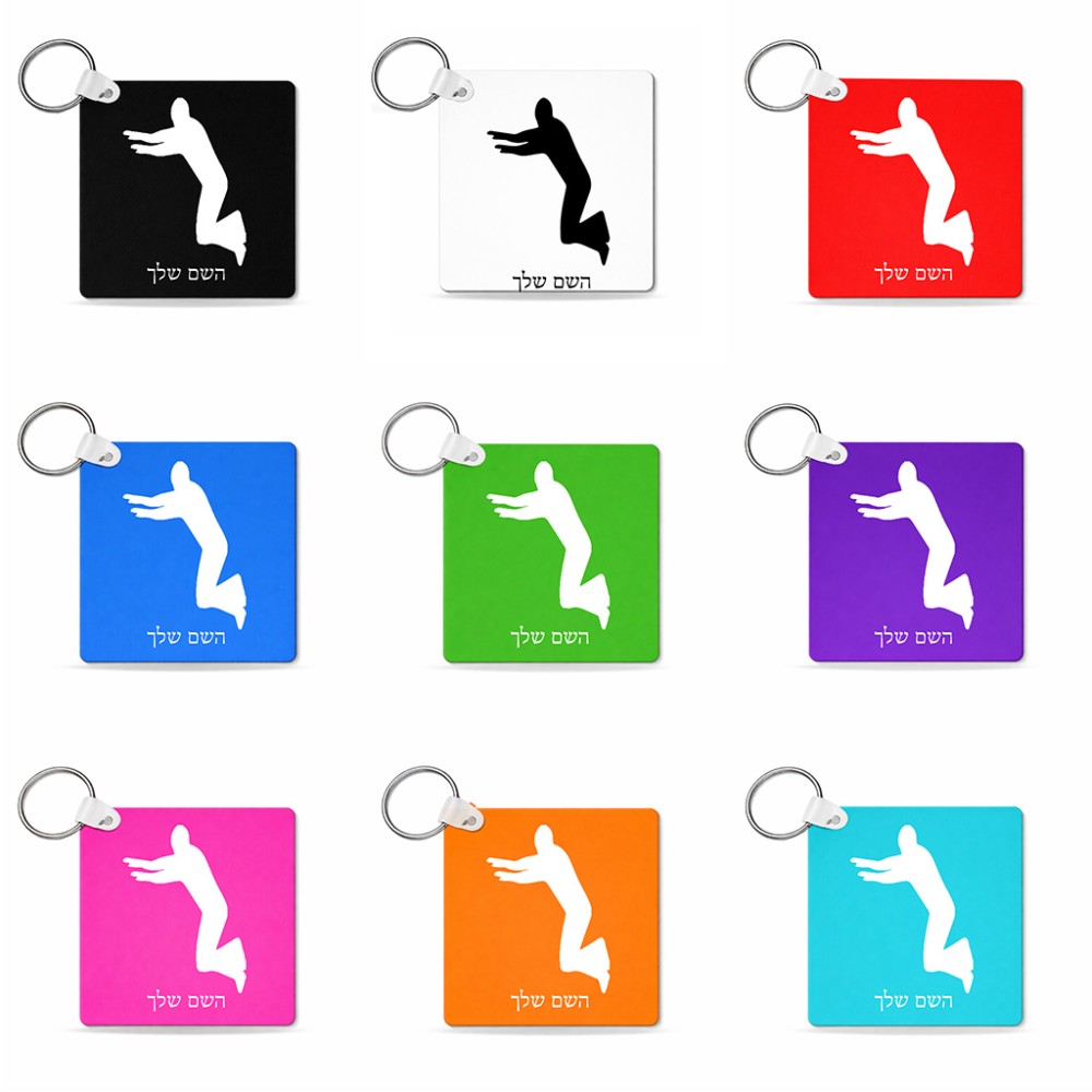 מחזיק מפתחות בצורת ריבוע בעיצוב אישי עם השם שלך בעיצוב פארקורינג גודל המחזיק 5 × 5 ס"מ