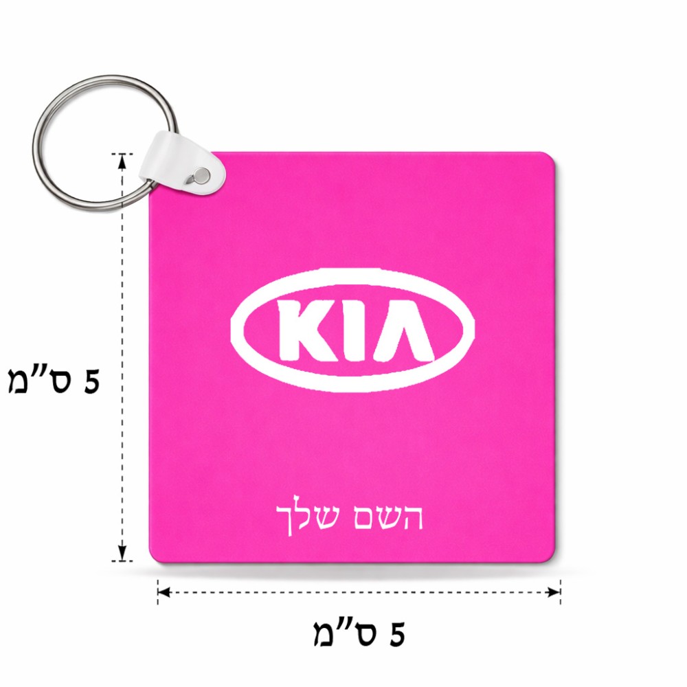 מחזיק מפתחות בצורת ריבוע בעיצוב אישי עם השם שלך בעיצוב קיה גודל המחזיק 5 × 5 ס"מ. את השם המבוקש ניתן לציין בהזמנה, אם לא צויין אנחנו ניצור קשר לבירור.