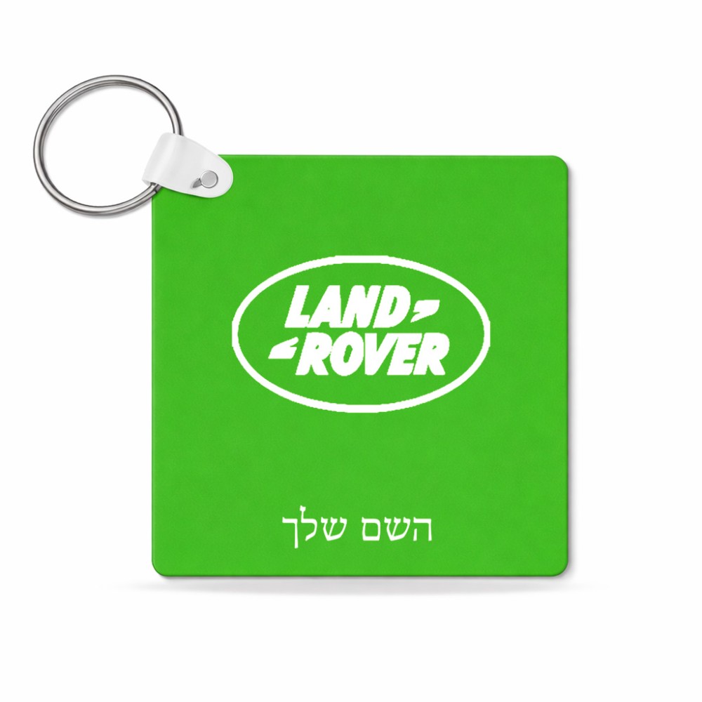 מחזיק מפתחות בצורת ריבוע בעיצוב אישי עם השם שלך בעיצוב לנד רובר גודל המחזיק 5 × 5 ס"מ. את השם המבוקש ניתן לציין בהזמנה, אם לא צויין אנחנו ניצור קשר לבירור.