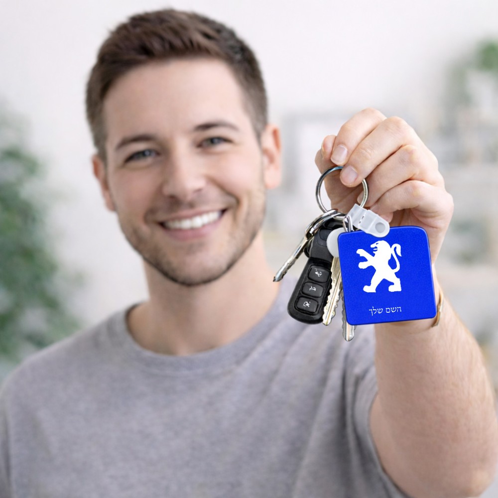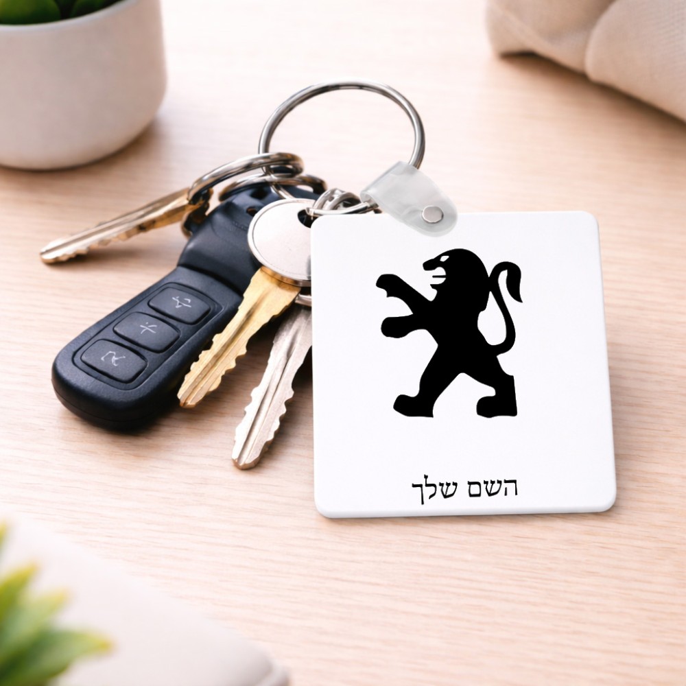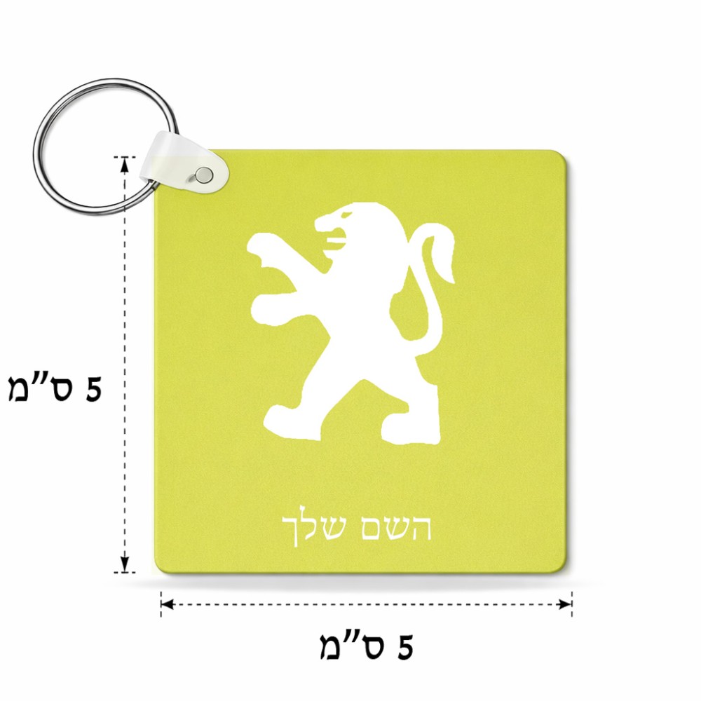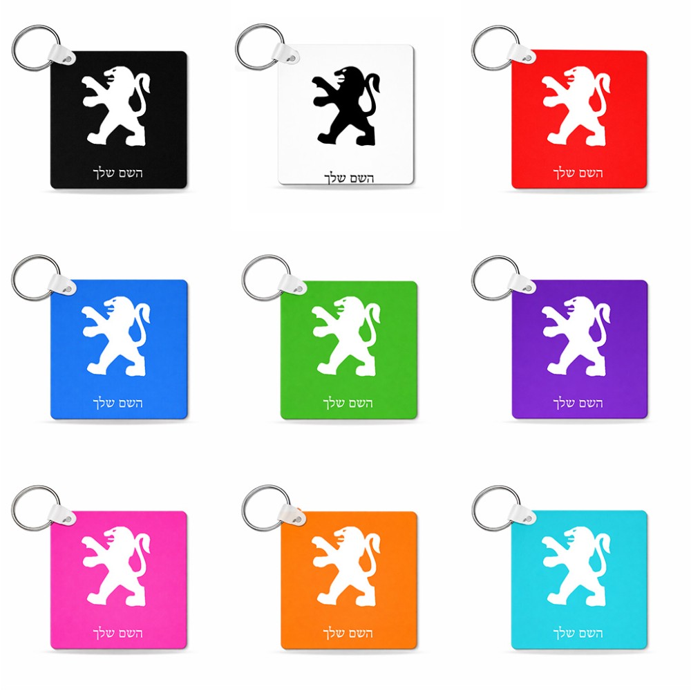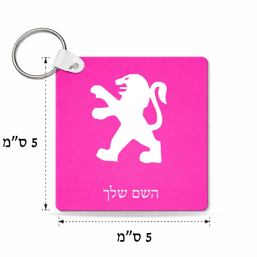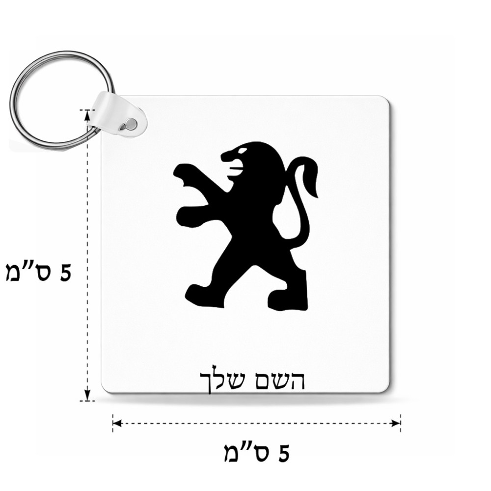 מחזיק מפתחות בצורת ריבוע בעיצוב אישי עם השם שלך בעיצוב פיג'ו גודל המחזיק 5 × 5 ס"מ. את השם המבוקש ניתן לציין בהזמנה, אם לא צויין אנחנו ניצור קשר לבירור.