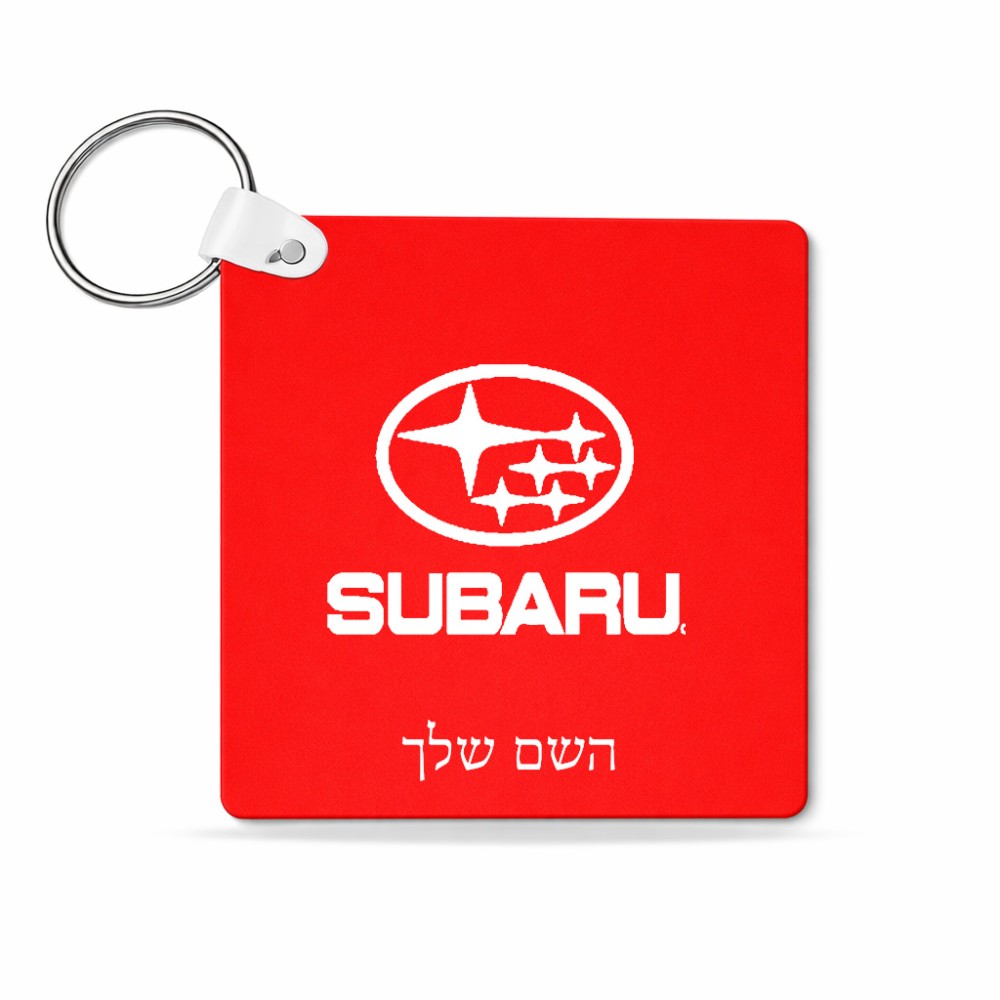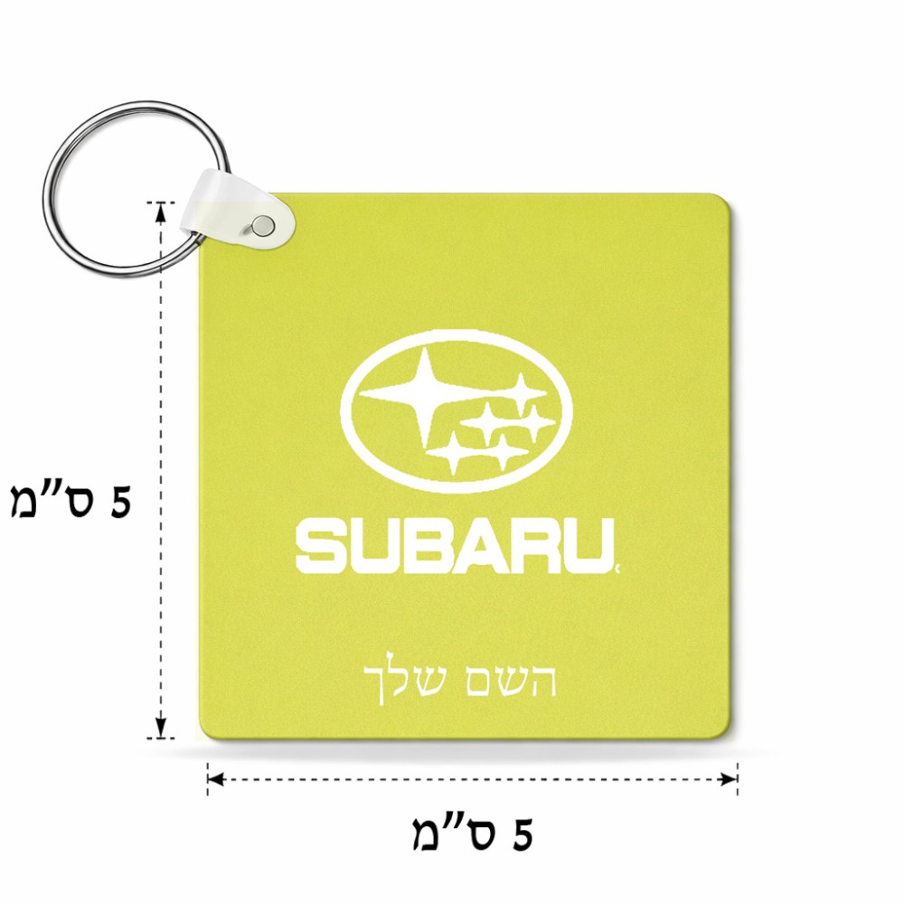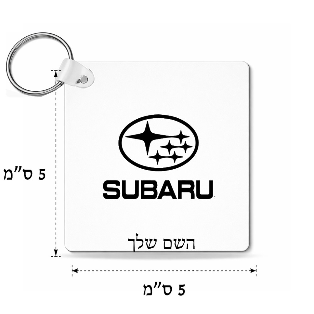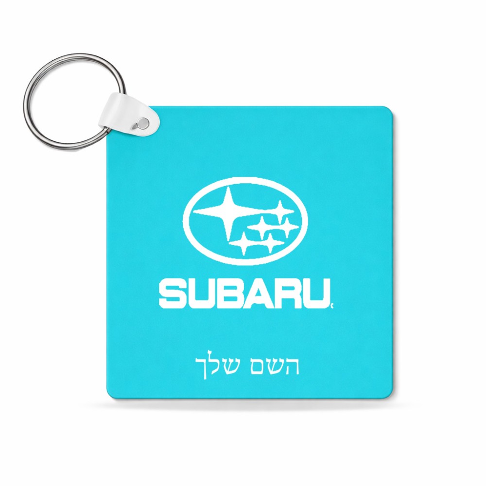 מחזיק מפתחות בצורת ריבוע בעיצוב אישי עם השם שלך בעיצוב סובארו גודל המחזיק 5 × 5 ס"מ. את השם המבוקש ניתן לציין בהזמנה, אם לא צויין אנחנו ניצור קשר לבירור.