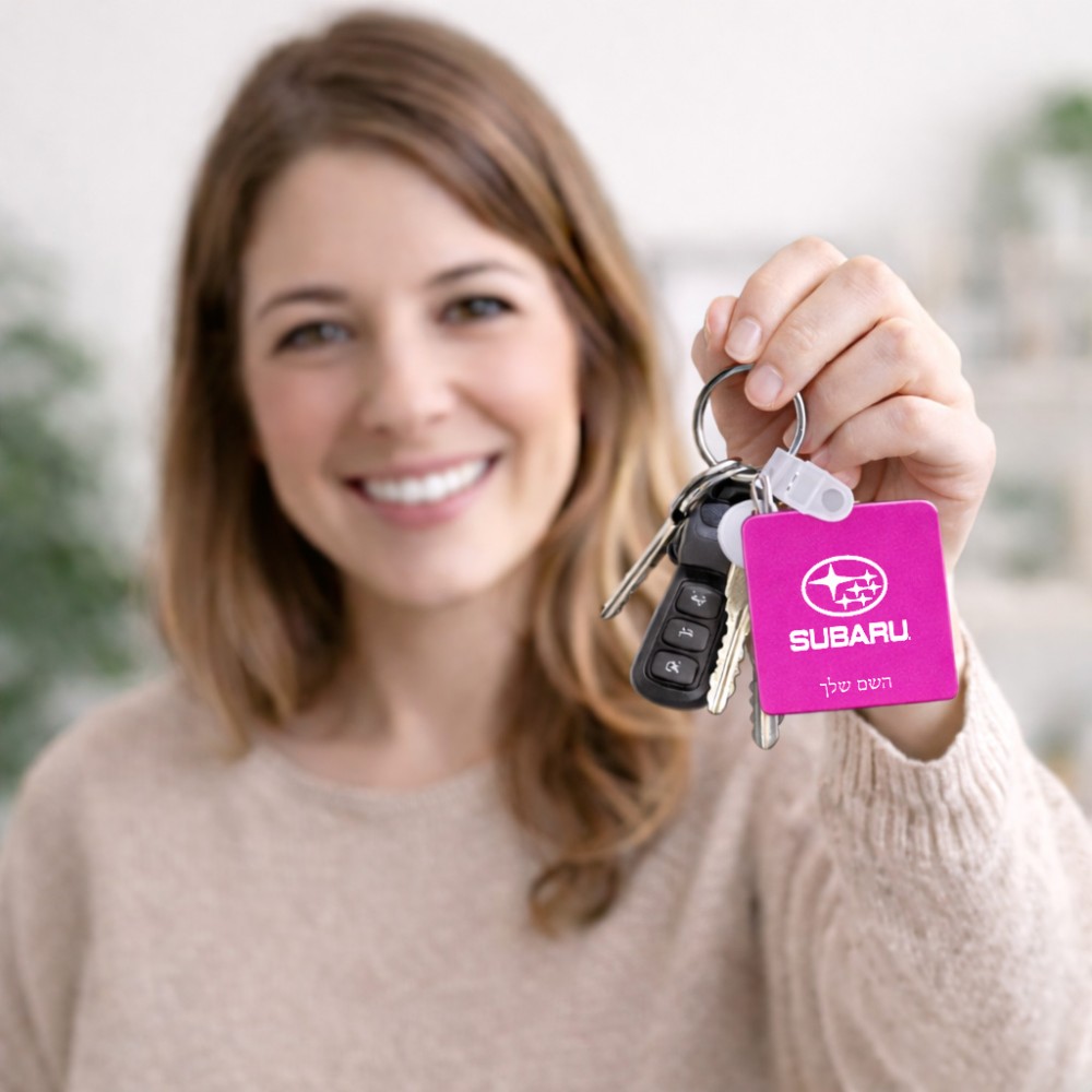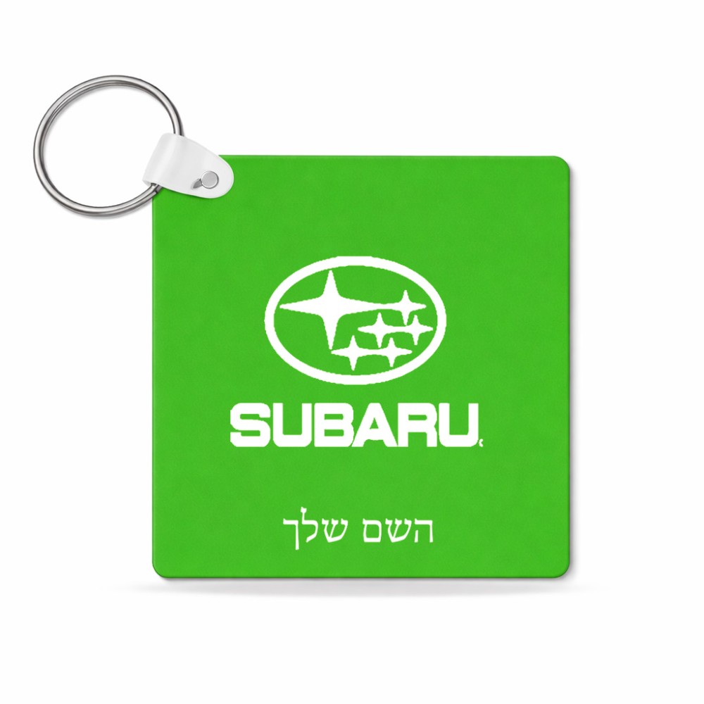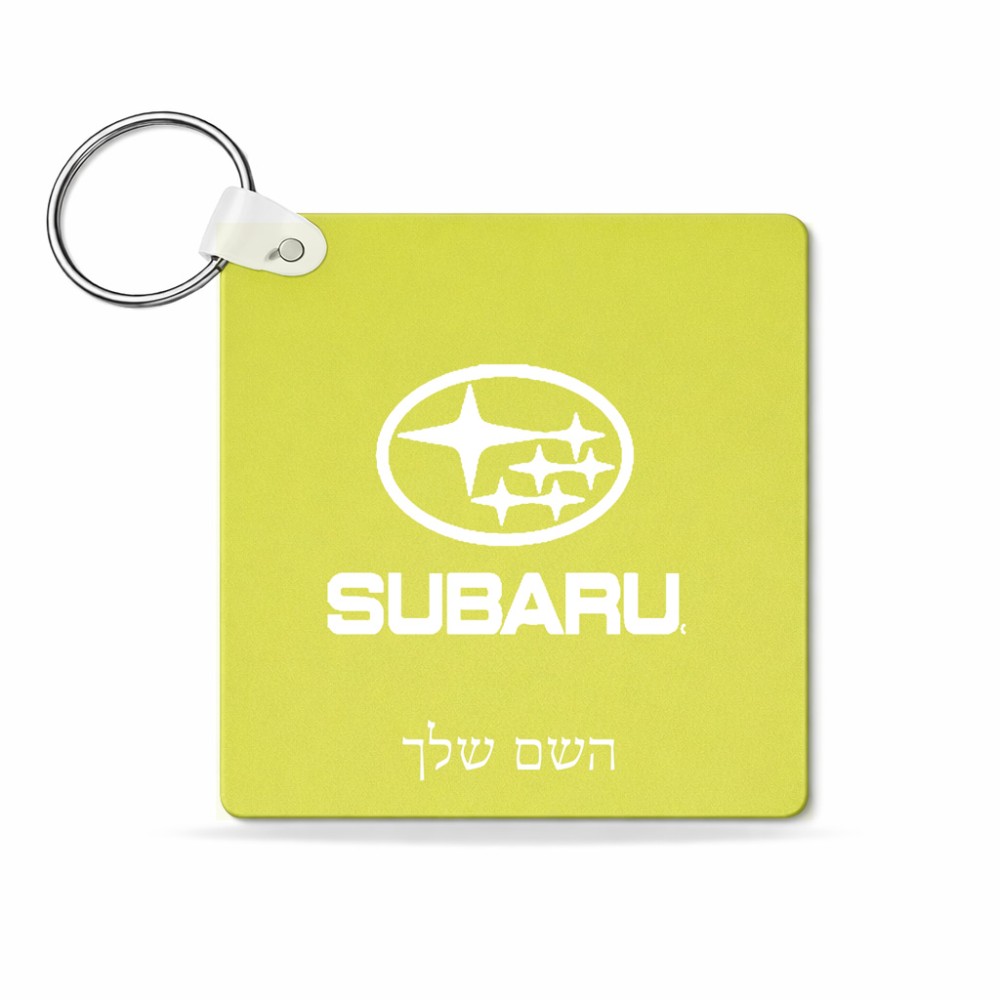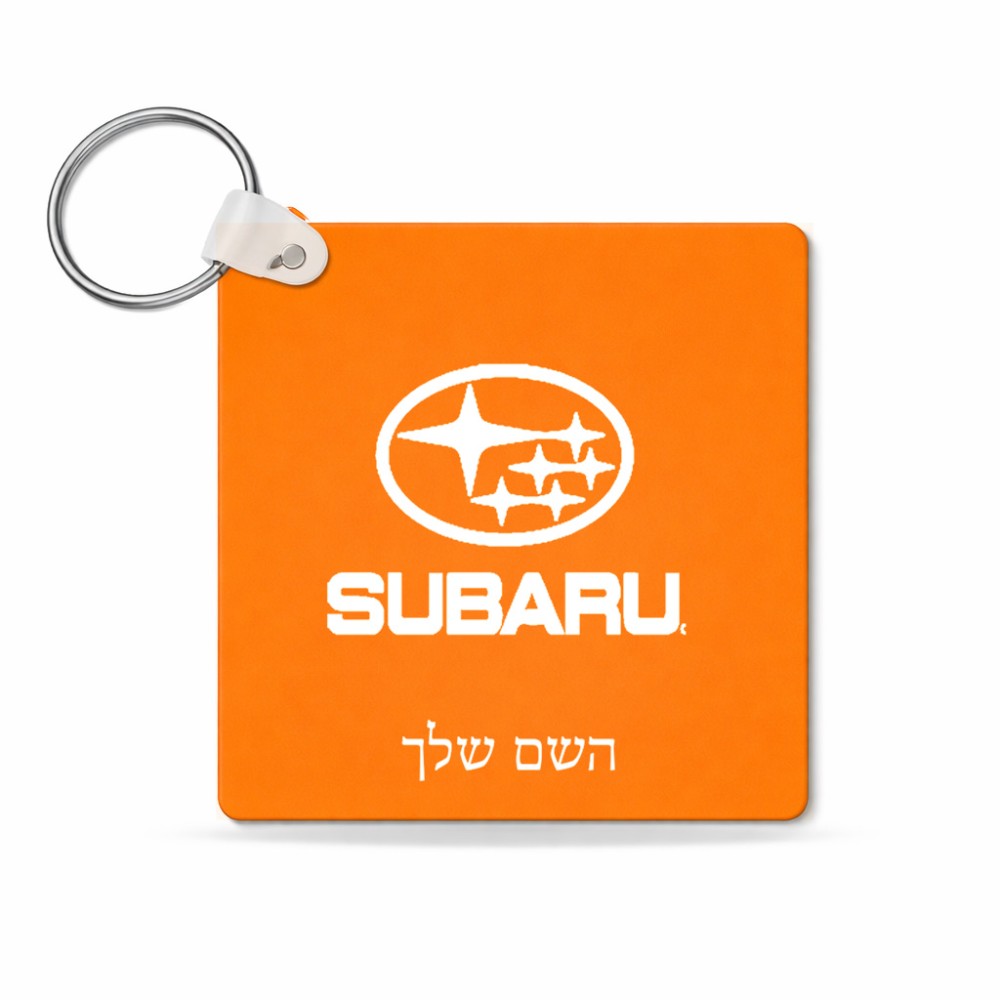 מחזיק מפתחות בצורת ריבוע בעיצוב אישי עם השם שלך בעיצוב סובארו גודל המחזיק 5 × 5 ס"מ. את השם המבוקש ניתן לציין בהזמנה, אם לא צויין אנחנו ניצור קשר לבירור.