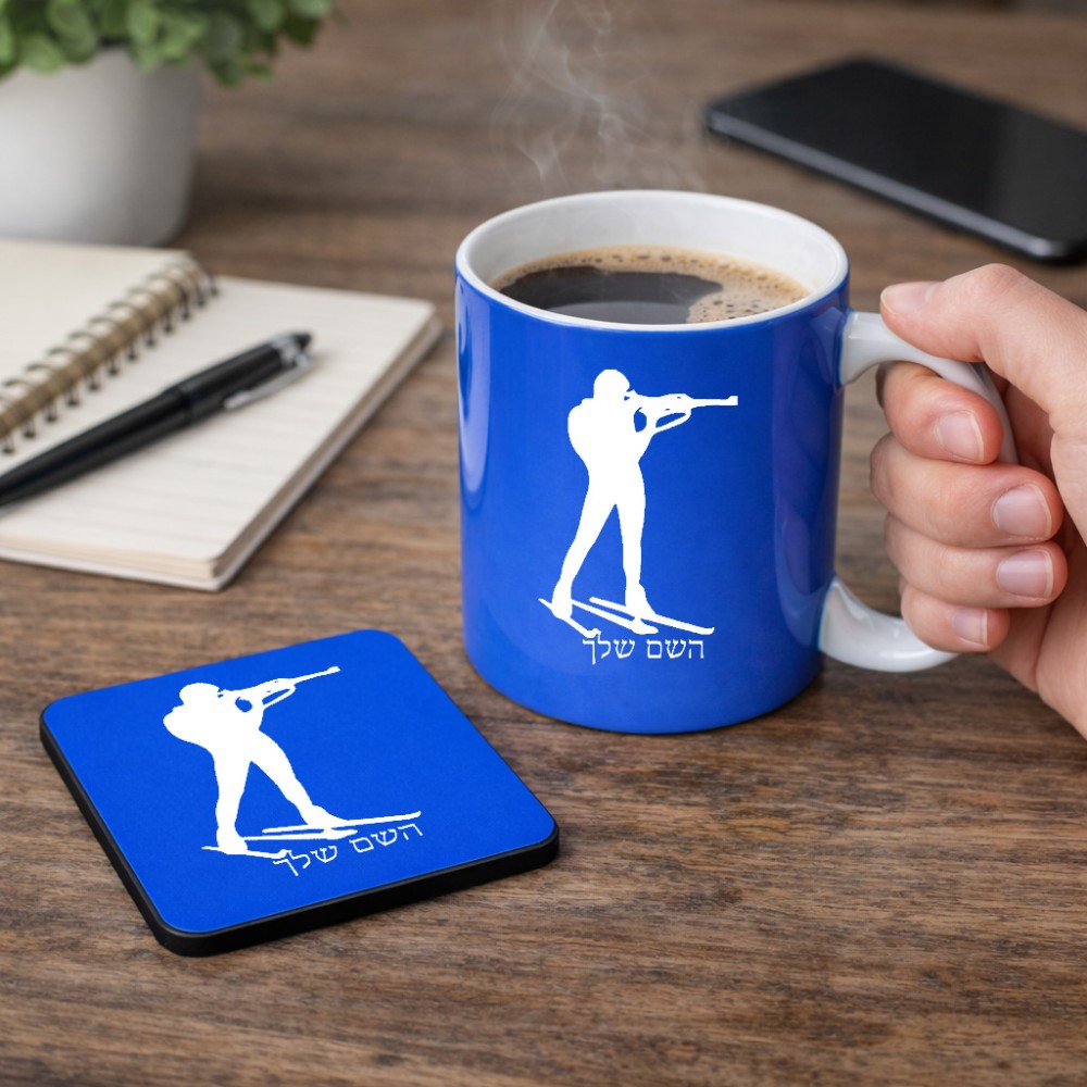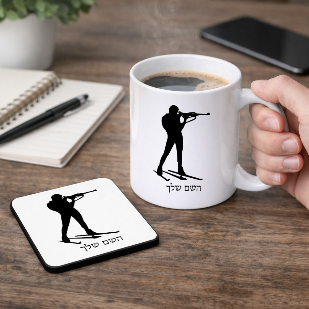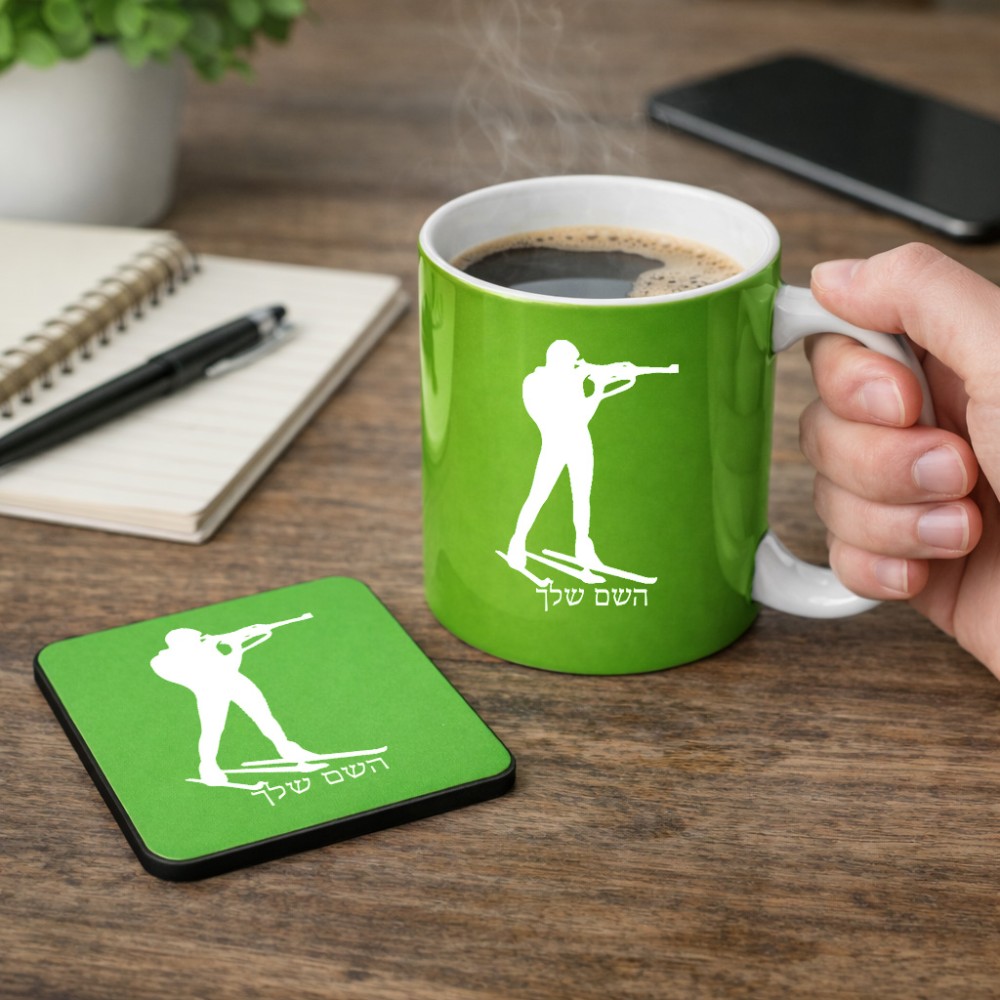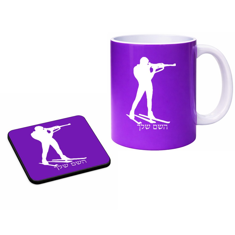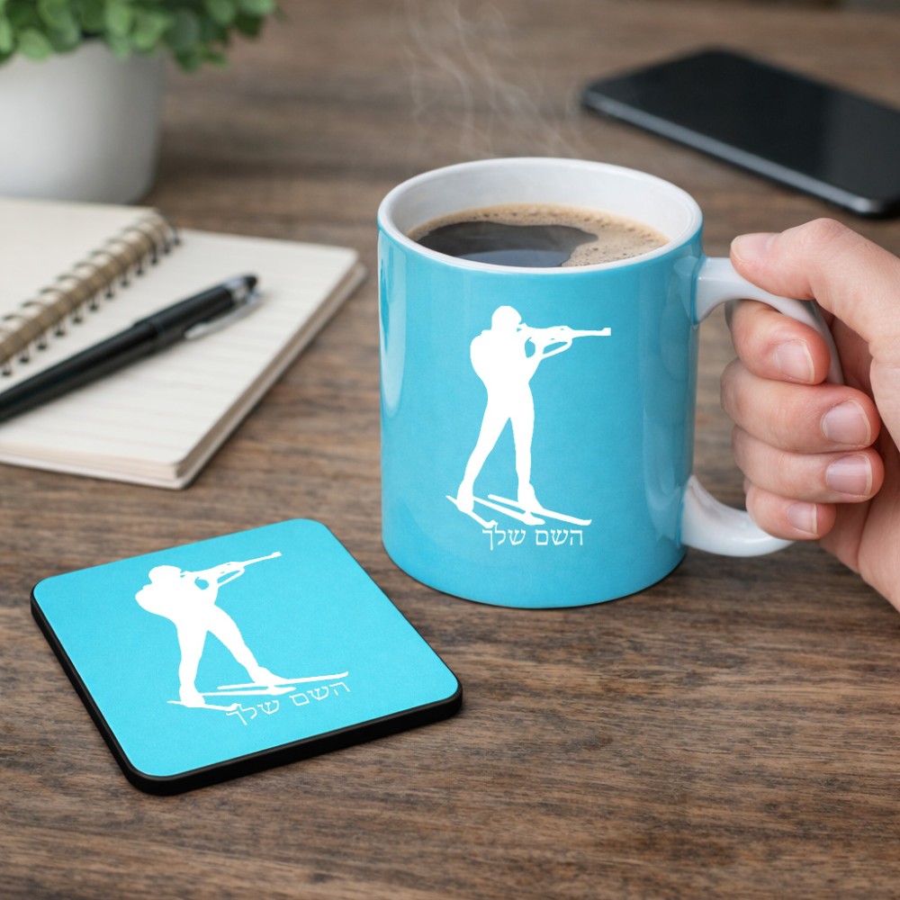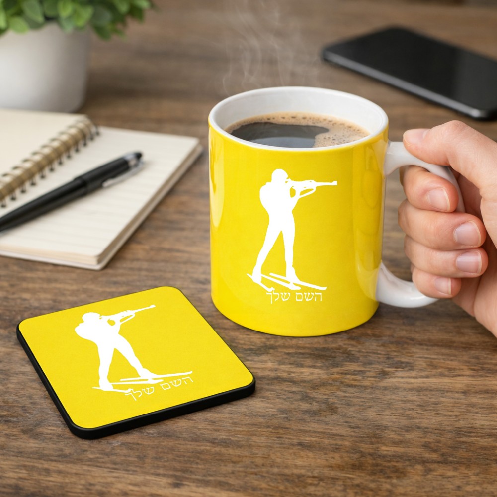 ספל תה \ קפה + תחתית מרובעת בעיצוב אישי עם השם שלך בעיצוב ביאתלון גודל הספל 325 מ"ל, הספל בעלת ידית לאחיזה יציבה, תחתית מעוצבת בגודל 9 × 9 ס"מ. את השם המבוקש ניתן לציין בהזמנה, אם לא צויין אנחנו ניצור קשר לבירור.