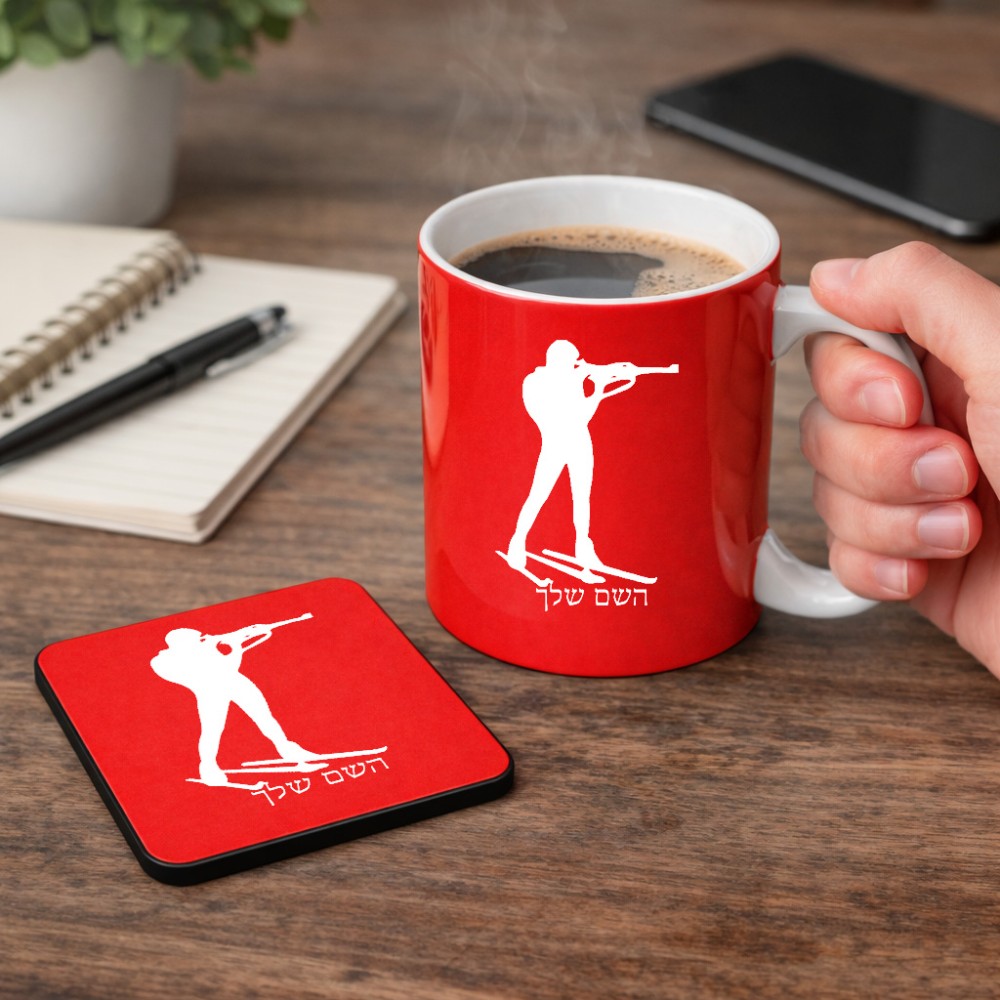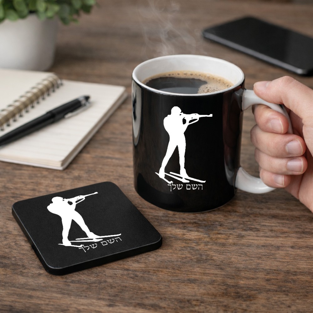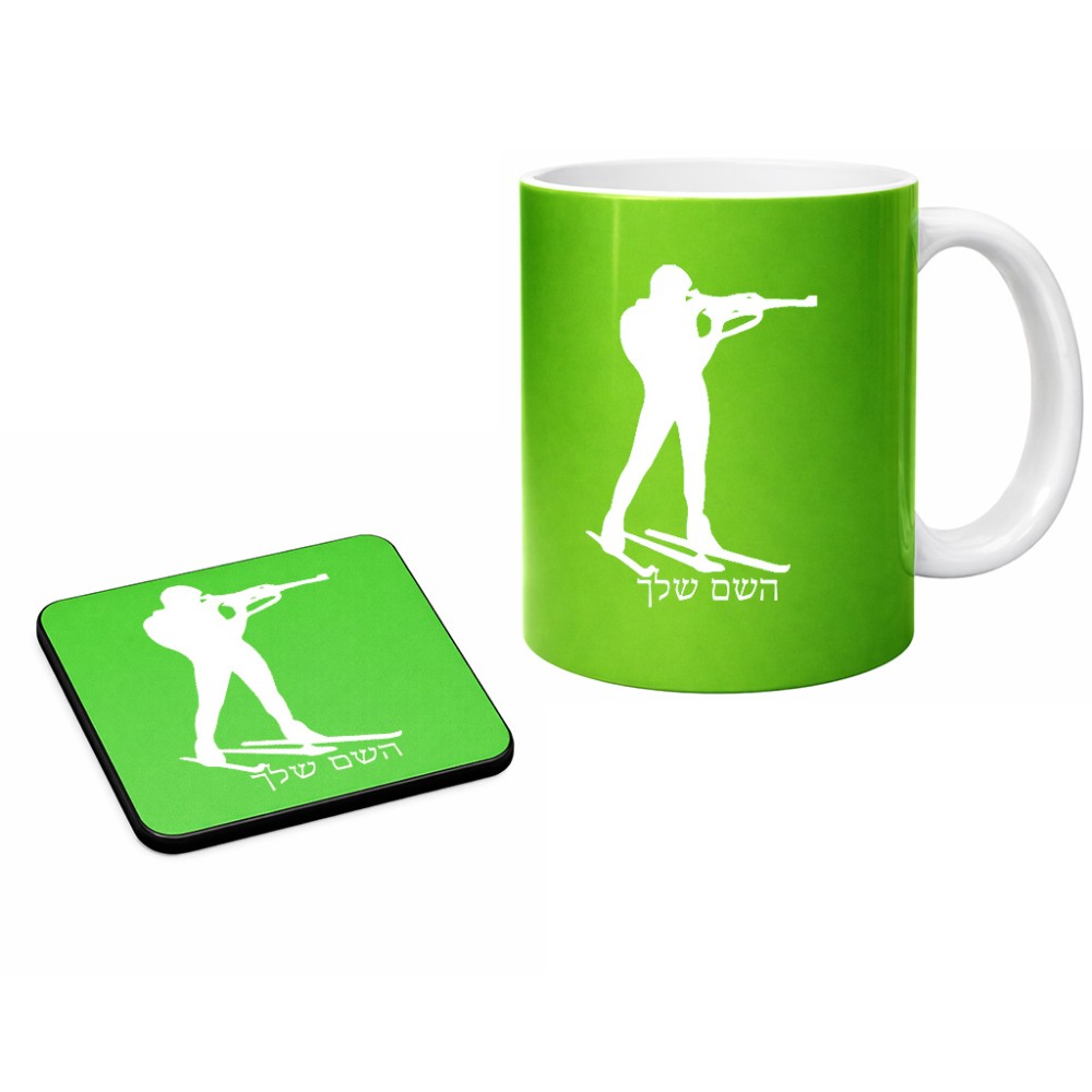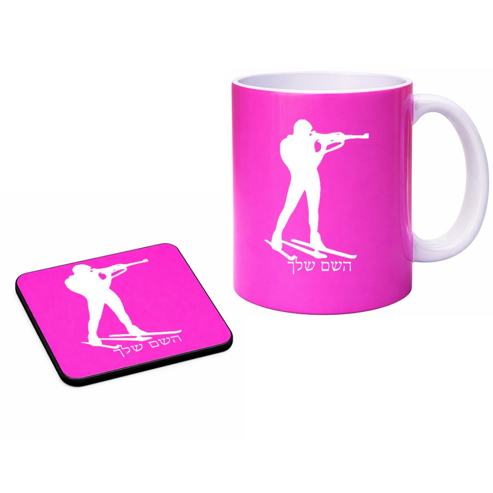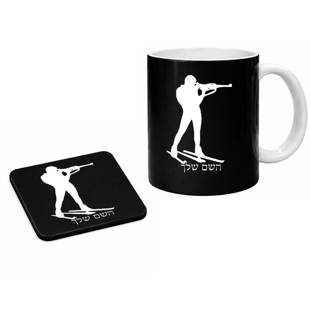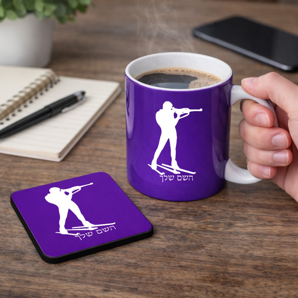 ספל תה \ קפה + תחתית מרובעת בעיצוב אישי עם השם שלך בעיצוב ביאתלון גודל הספל 325 מ"ל, הספל בעלת ידית לאחיזה יציבה, תחתית מעוצבת בגודל 9 × 9 ס"מ. את השם המבוקש ניתן לציין בהזמנה, אם לא צויין אנחנו ניצור קשר לבירור.