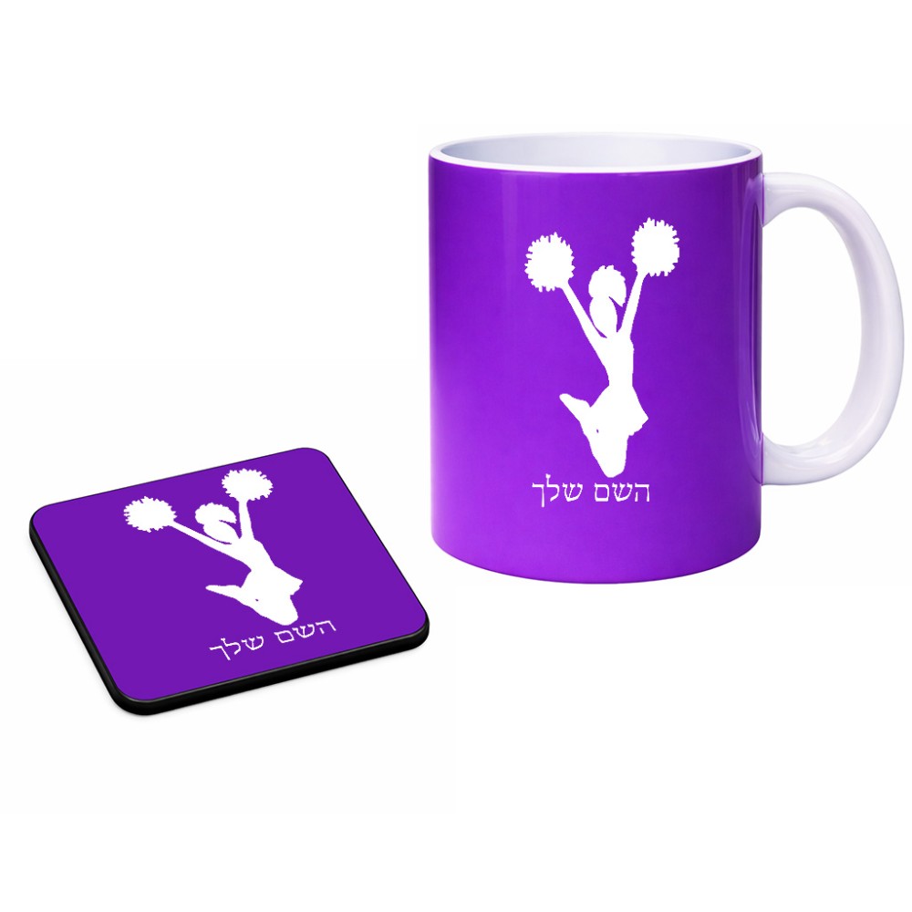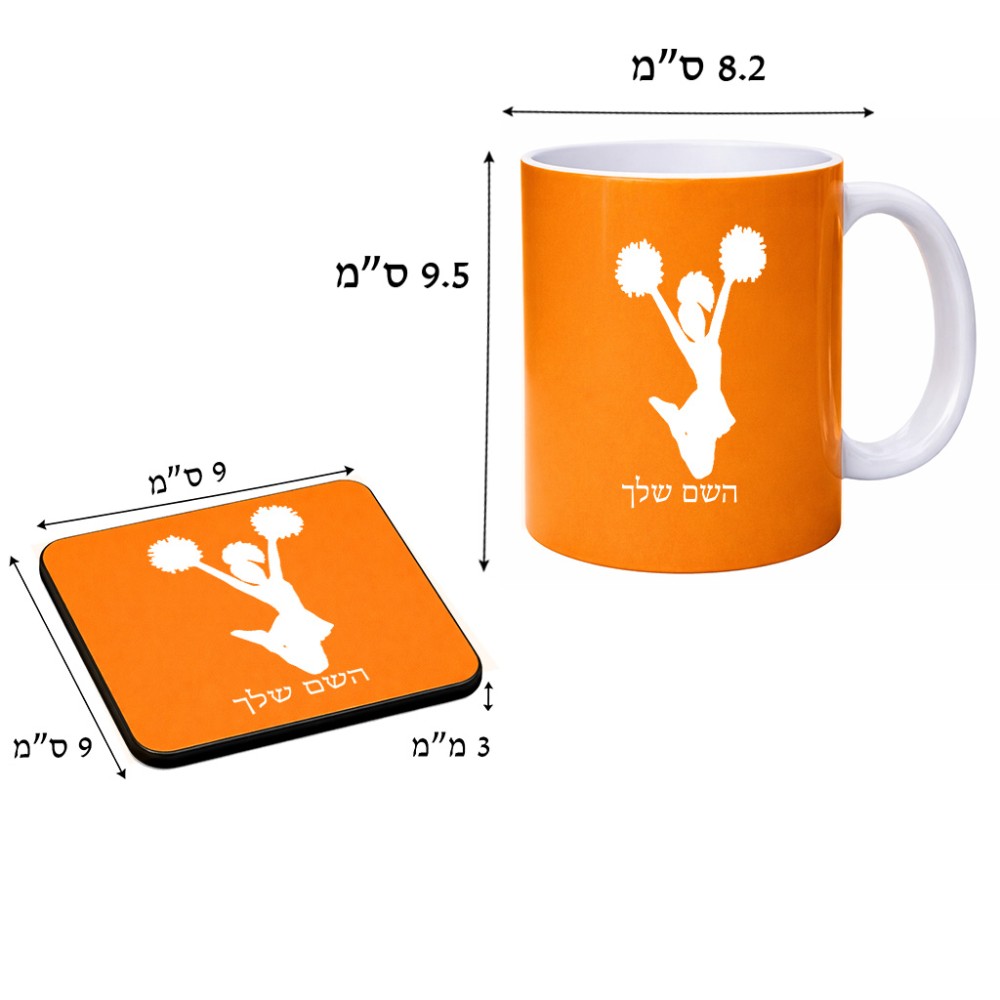 ספל תה \ קפה + תחתית מרובעת בעיצוב אישי עם השם שלך בעיצוב מעודדת גודל הספל 325 מ"ל, הספל בעלת ידית לאחיזה יציבה, תחתית מעוצבת בגודל 9 × 9 ס"מ. את השם המבוקש ניתן לציין בהזמנה, אם לא צויין אנחנו ניצור קשר לבירור.