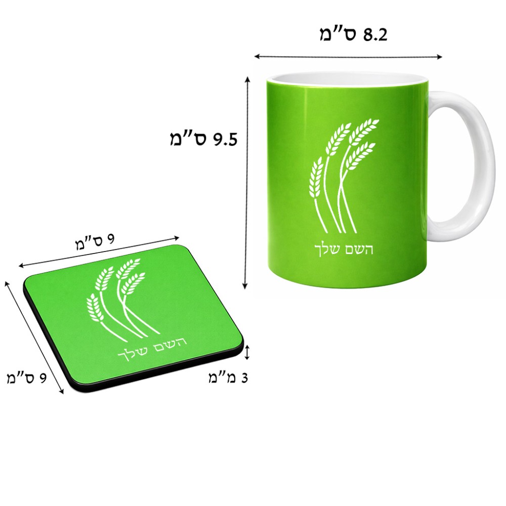 ספל תה \ קפה + תחתית מרובעת בעיצוב אישי עם השם שלך בעיצוב חיטה גלית זהב גודל הספל 325 מ"ל, הספל בעלת ידית לאחיזה יציבה, תחתית מעוצבת בגודל 9 × 9 ס"מ. את השם המבוקש ניתן לציין בהזמנה, אם לא צויין אנחנו ניצור קשר לבירור.