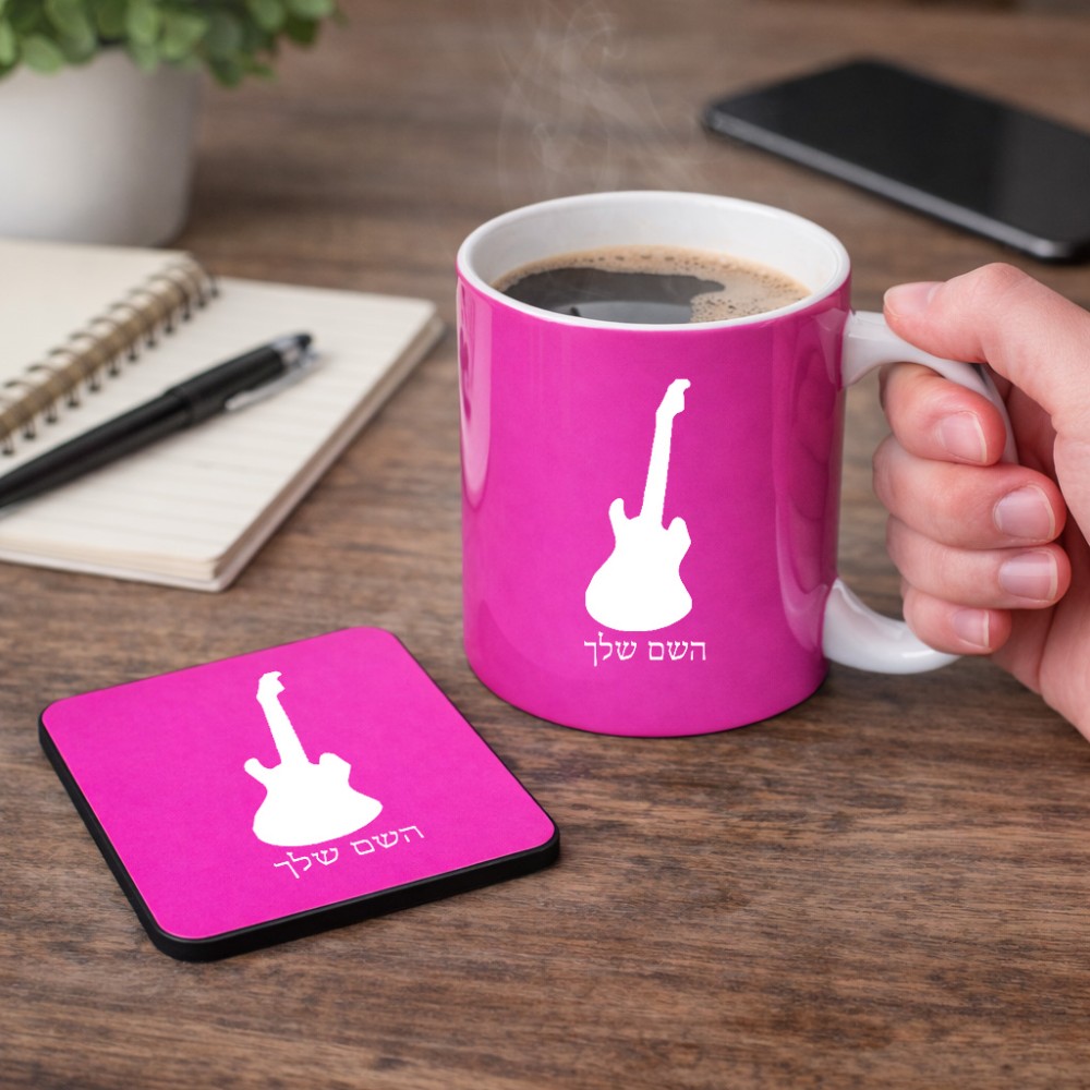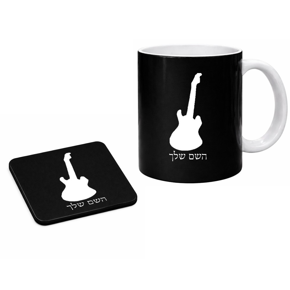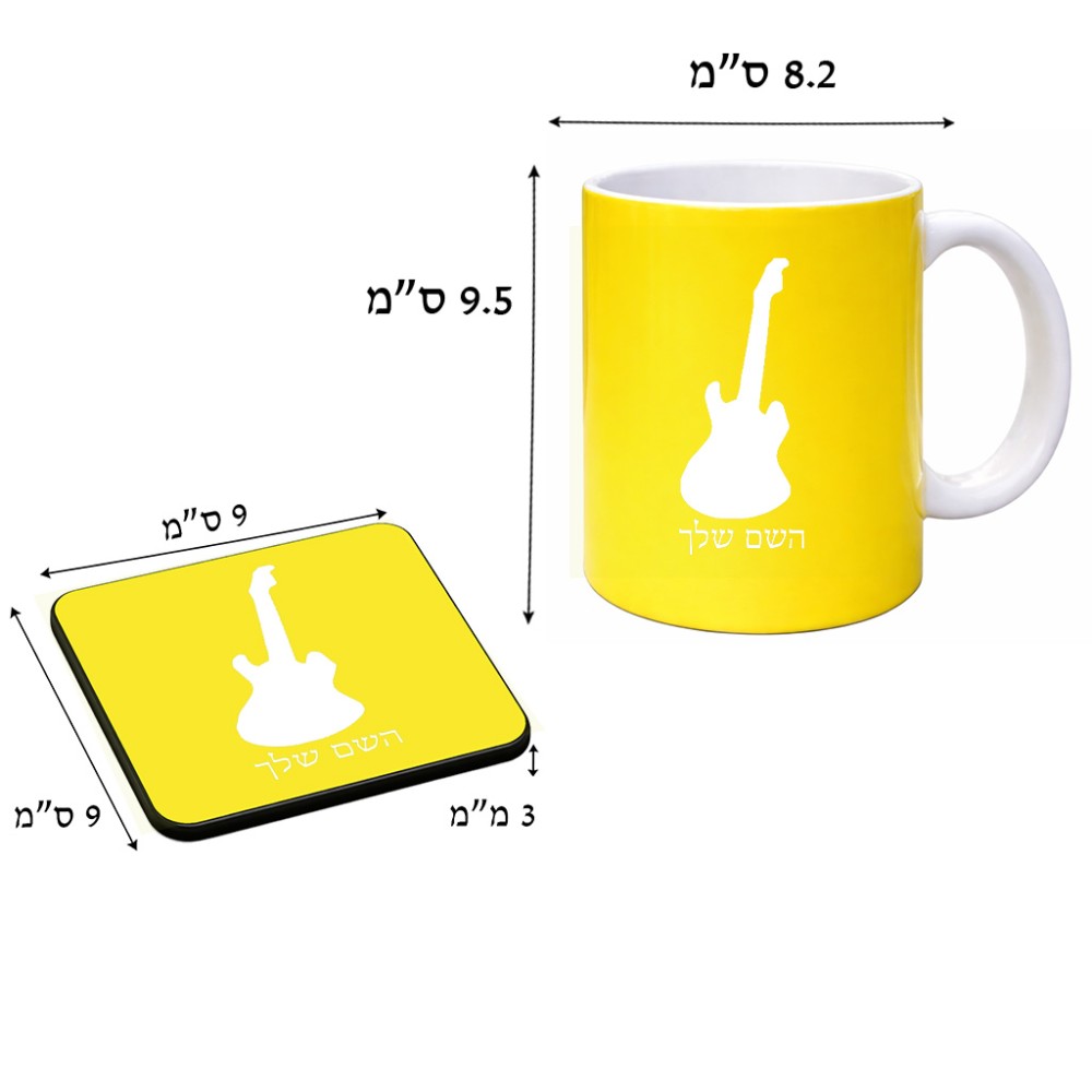 ספל תה \ קפה + תחתית מרובעת בעיצוב אישי עם השם שלך בעיצוב גיטרה גודל הספל 325 מ"ל, הספל בעלת ידית לאחיזה יציבה, תחתית מעוצבת בגודל 9 × 9 ס"מ. את השם המבוקש ניתן לציין בהזמנה, אם לא צויין אנחנו ניצור קשר לבירור.