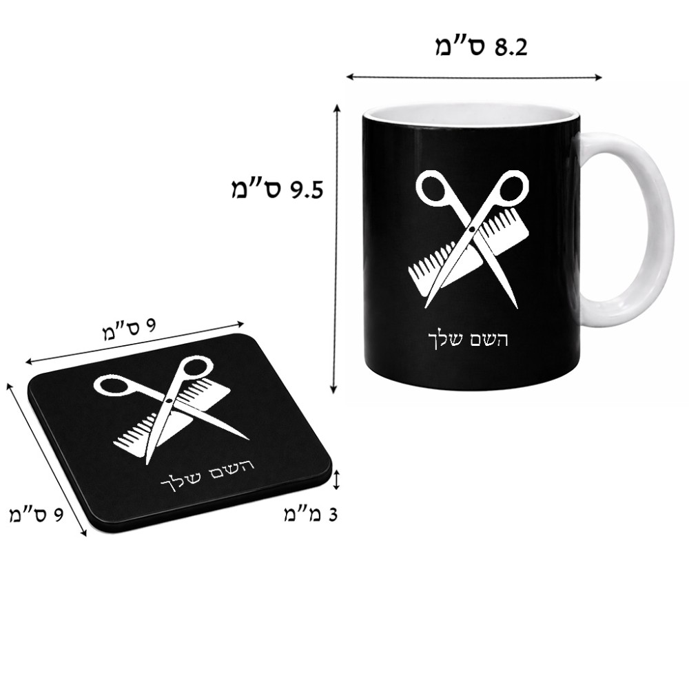 ספל תה \ קפה + תחתית מרובעת בעיצוב אישי עם השם שלך בעיצוב מעצב שיער גודל הספל 325 מ"ל, הספל בעלת ידית לאחיזה יציבה, תחתית מעוצבת בגודל 9 × 9 ס"מ. את השם המבוקש ניתן לציין בהזמנה, אם לא צויין אנחנו ניצור קשר לבירור.