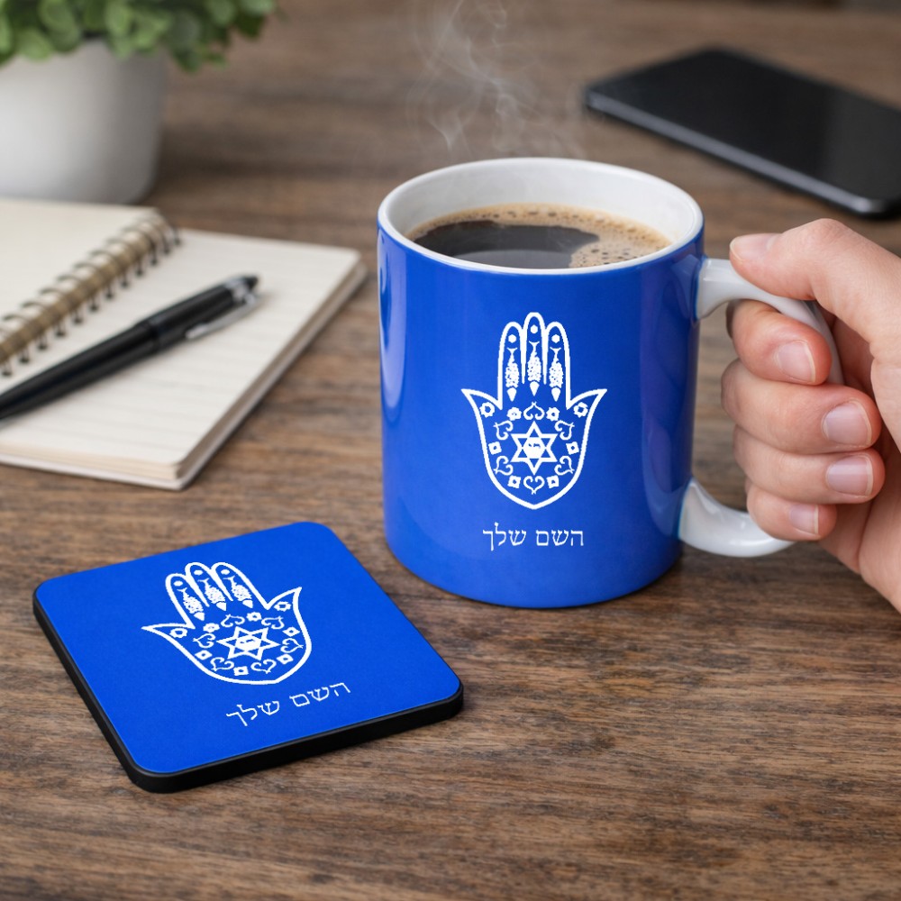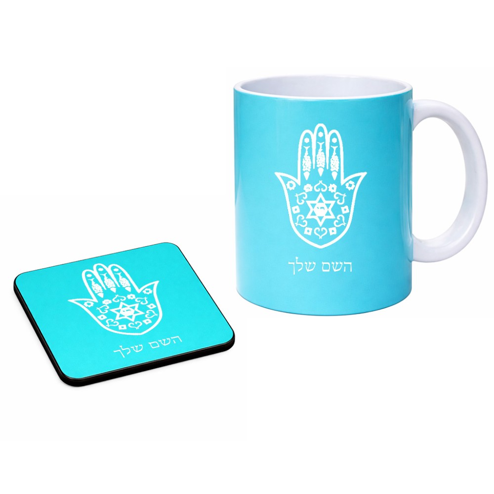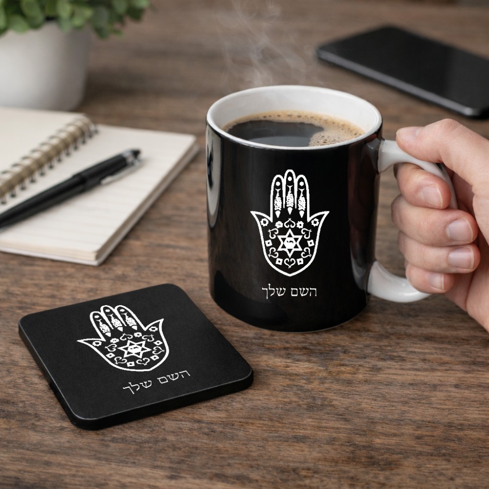 ספל תה \ קפה + תחתית מרובעת בעיצוב אישי עם השם שלך בעיצוב חמסה - קבלה גודל הספל 325 מ"ל, הספל בעלת ידית לאחיזה יציבה, תחתית מעוצבת בגודל 9 × 9 ס"מ. את השם המבוקש ניתן לציין בהזמנה, אם לא צויין אנחנו ניצור קשר לבירור.