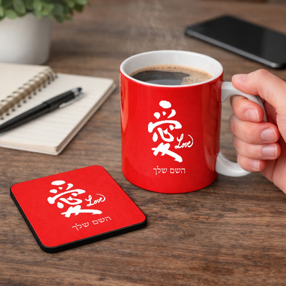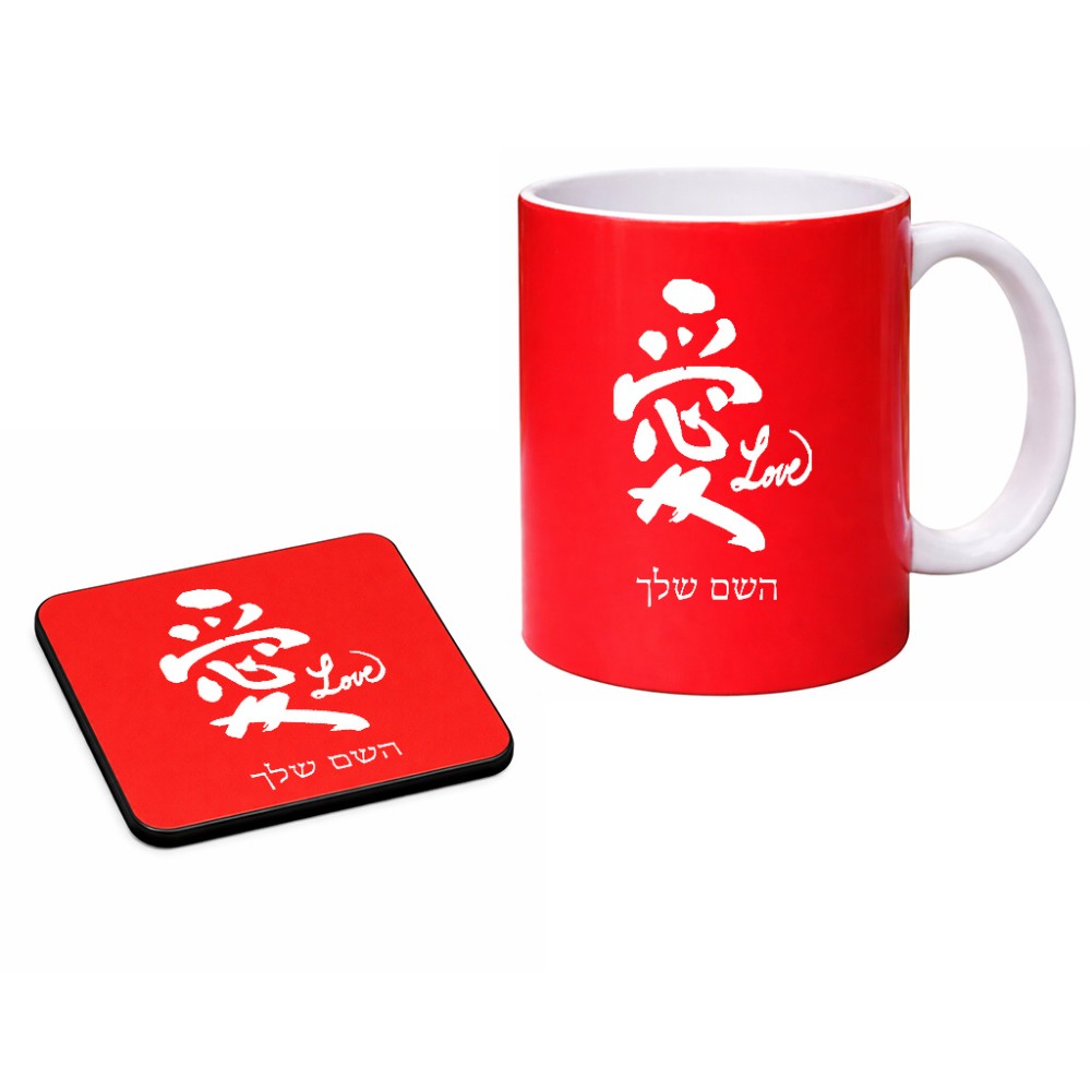 ספל תה \ קפה + תחתית מרובעת בעיצוב אישי עם השם שלך בעיצוב אהבה באותיות יפניות גודל הספל 325 מ"ל, הספל בעלת ידית לאחיזה יציבה, תחתית מעוצבת בגודל 9 × 9 ס"מ. את השם המבוקש ניתן לציין בהזמנה, אם לא צויין אנחנו ניצור קשר לבירור.
