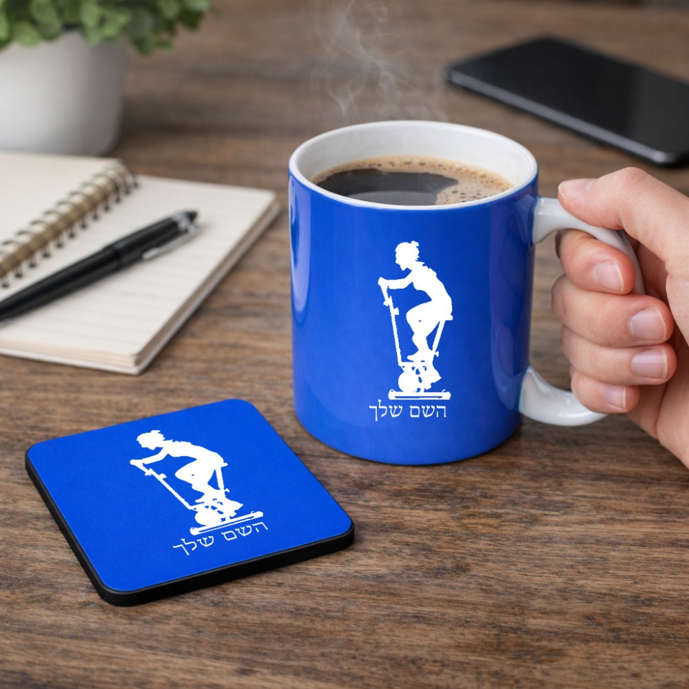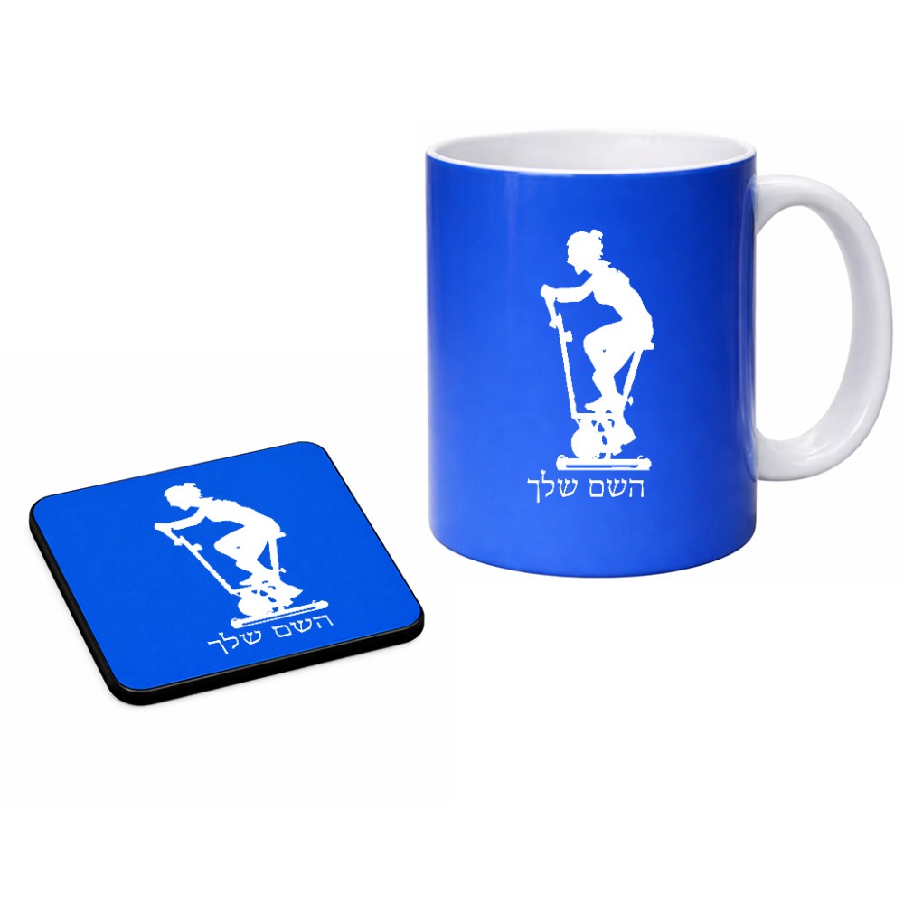 ספל תה \ קפה + תחתית מרובעת בעיצוב אישי עם השם שלך בעיצוב אימון ספינינג - אישה גודל הספל 325 מ"ל, הספל בעלת ידית לאחיזה יציבה, תחתית מעוצבת בגודל 9 × 9 ס"מ. את השם המבוקש ניתן לציין בהזמנה, אם לא צויין אנחנו ניצור קשר לבירור.