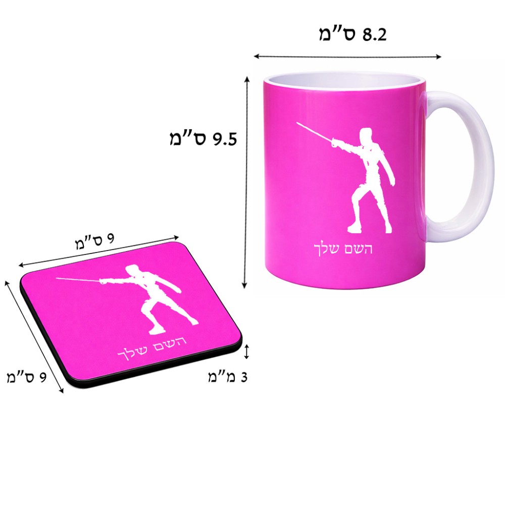 ספל תה \ קפה + תחתית מרובעת בעיצוב אישי עם השם שלך בעיצוב לוחם סייף גודל הספל 325 מ"ל, הספל בעלת ידית לאחיזה יציבה, תחתית מעוצבת בגודל 9 × 9 ס"מ. את השם המבוקש ניתן לציין בהזמנה, אם לא צויין אנחנו ניצור קשר לבירור.