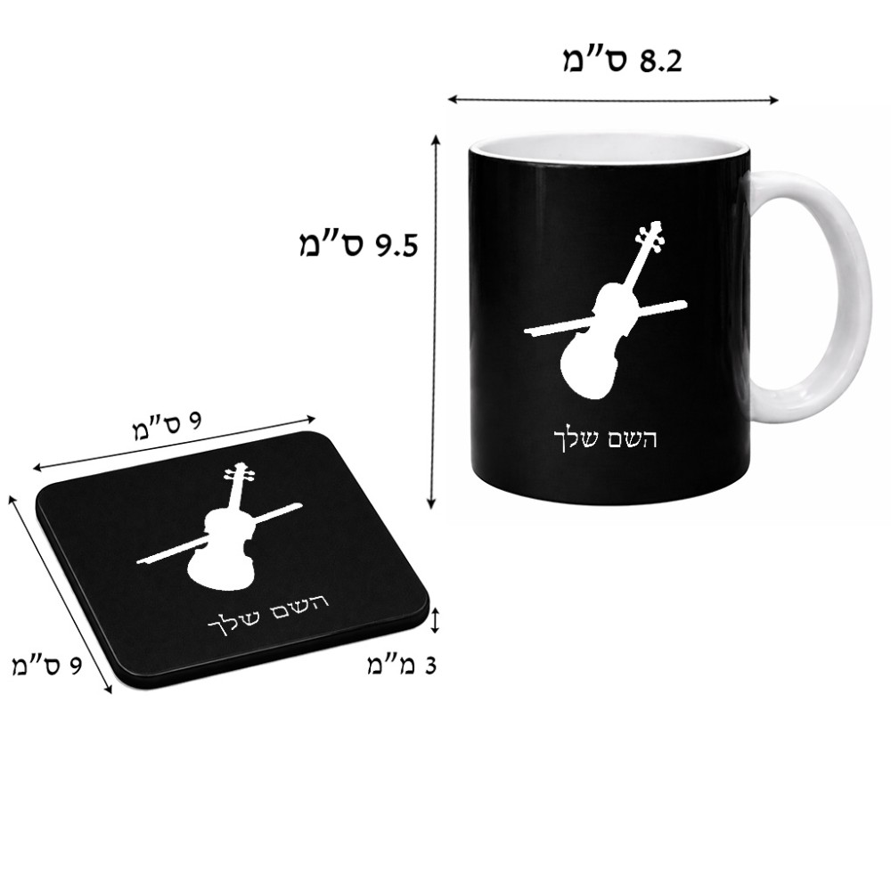 ספל תה \ קפה + תחתית מרובעת בעיצוב אישי עם השם שלך בעיצוב כינור גודל הספל 325 מ"ל, הספל בעלת ידית לאחיזה יציבה, תחתית מעוצבת בגודל 9 × 9 ס"מ. את השם המבוקש ניתן לציין בהזמנה, אם לא צויין אנחנו ניצור קשר לבירור.