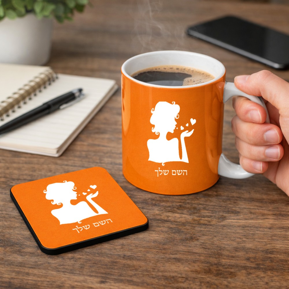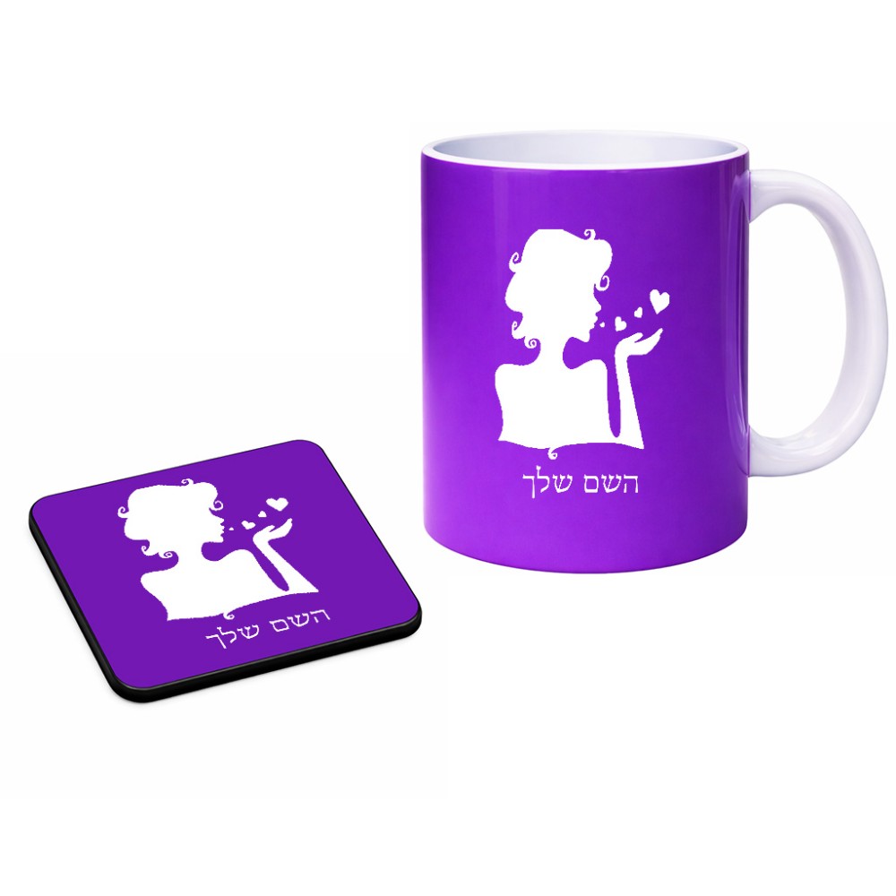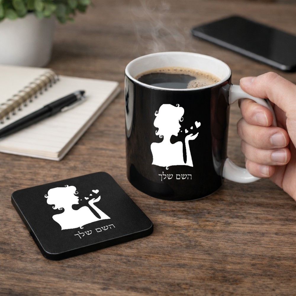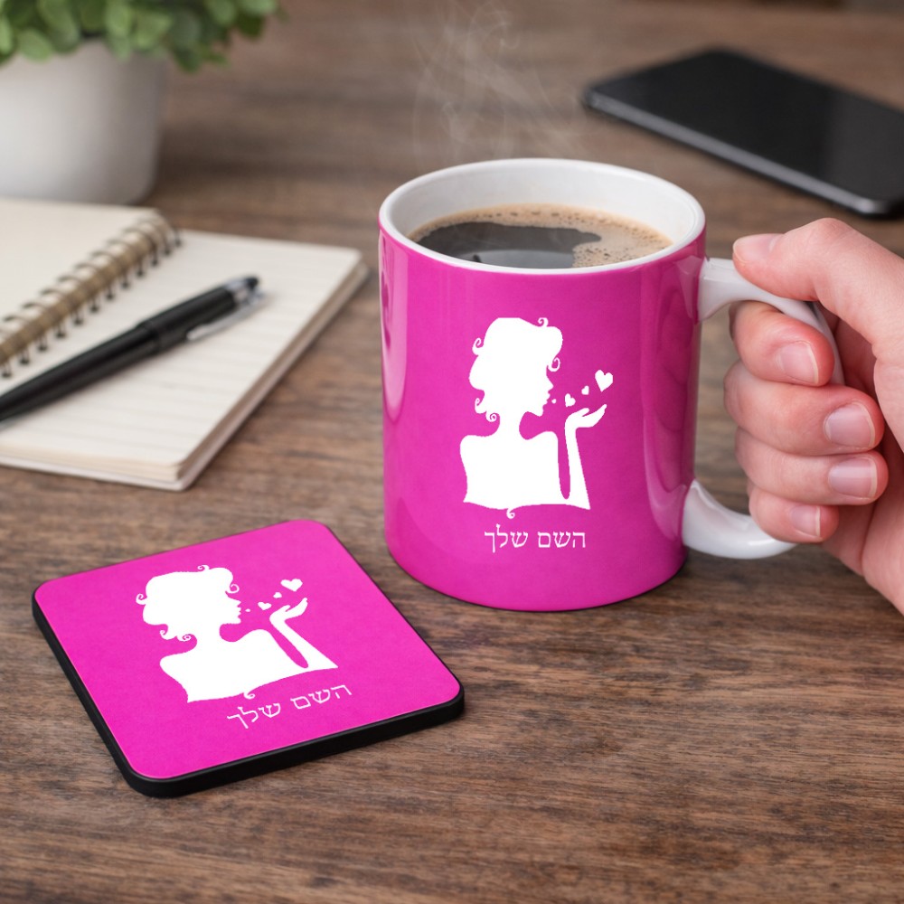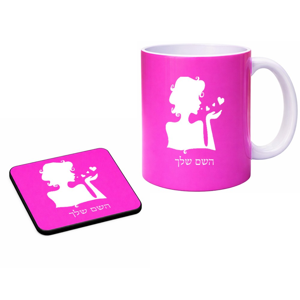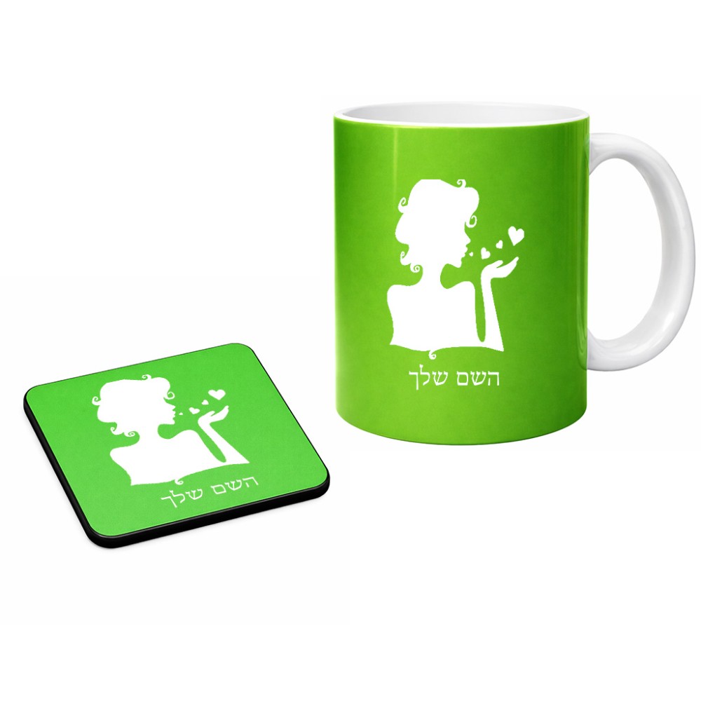 ספל תה \ קפה + תחתית מרובעת בעיצוב אישי עם השם שלך בעיצוב אהבת נשים גודל הספל 325 מ"ל, הספל בעלת ידית לאחיזה יציבה, תחתית מעוצבת בגודל 9 × 9 ס"מ. את השם המבוקש ניתן לציין בהזמנה, אם לא צויין אנחנו ניצור קשר לבירור.