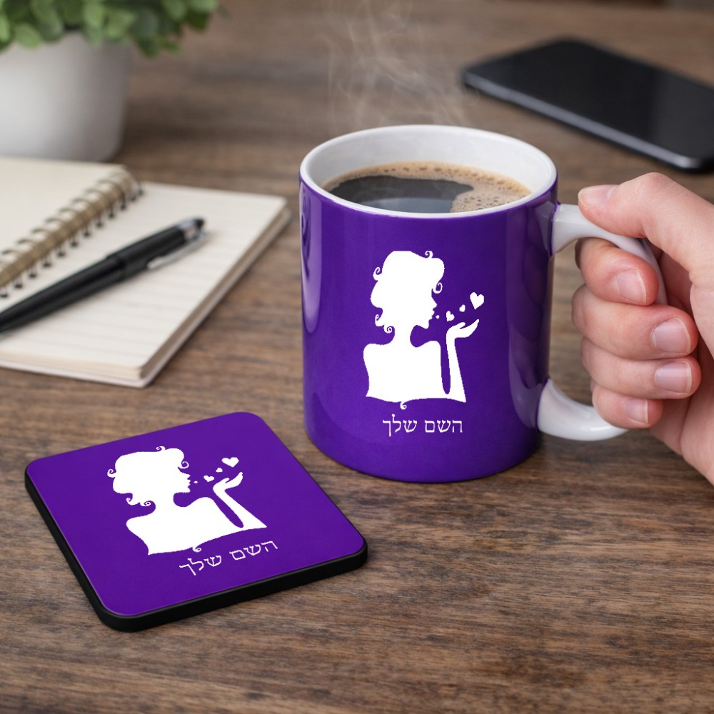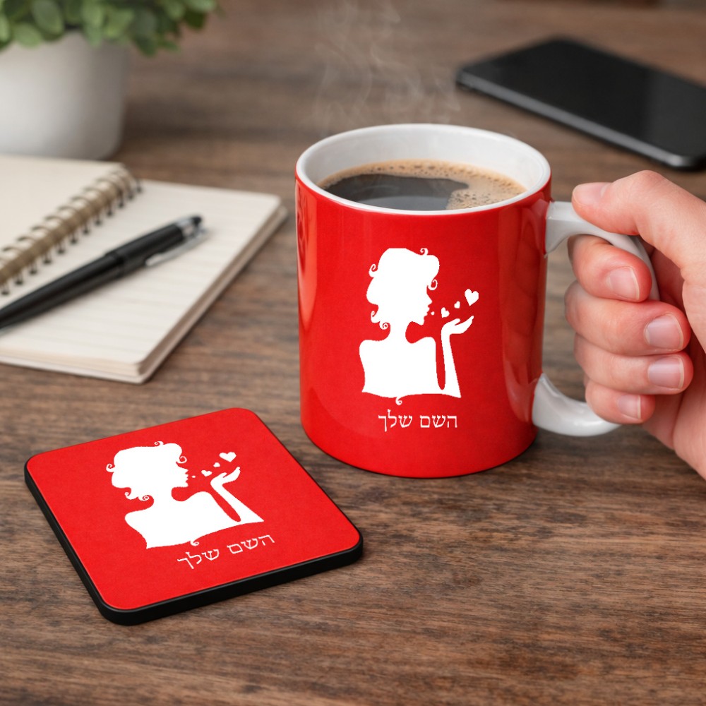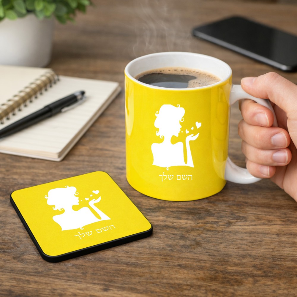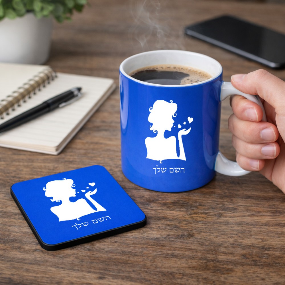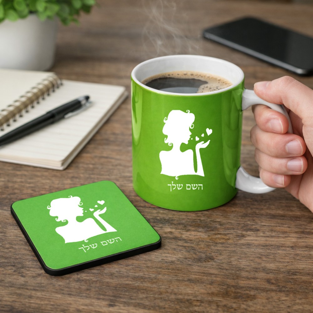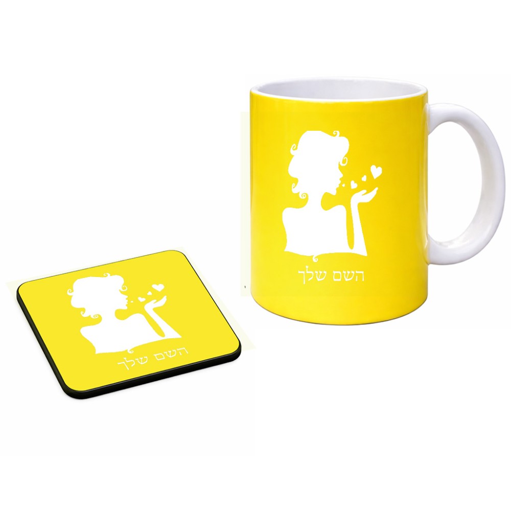ספל תה \ קפה + תחתית מרובעת בעיצוב אישי עם השם שלך בעיצוב אהבת נשים גודל הספל 325 מ"ל, הספל בעלת ידית לאחיזה יציבה, תחתית מעוצבת בגודל 9 × 9 ס"מ. את השם המבוקש ניתן לציין בהזמנה, אם לא צויין אנחנו ניצור קשר לבירור.