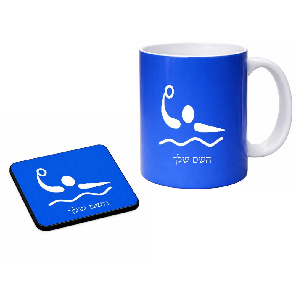 ספל תה \ קפה + תחתית מרובעת בעיצוב אישי עם השם שלך בעיצוב כדור מים אולימפי גודל הספל 325 מ"ל, הספל בעלת ידית לאחיזה יציבה, תחתית מעוצבת בגודל 9 × 9 ס"מ. את השם המבוקש ניתן לציין בהזמנה, אם לא צויין אנחנו ניצור קשר לבירור.