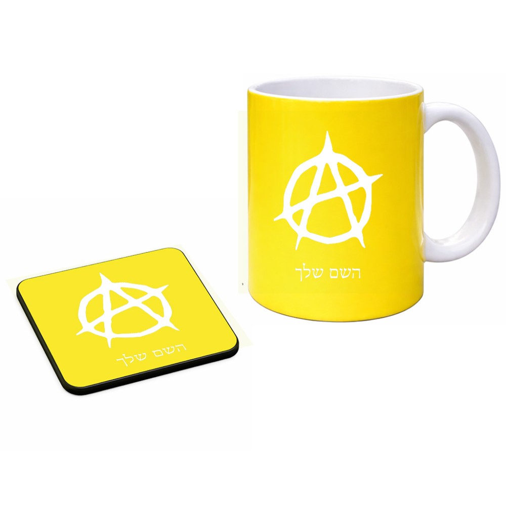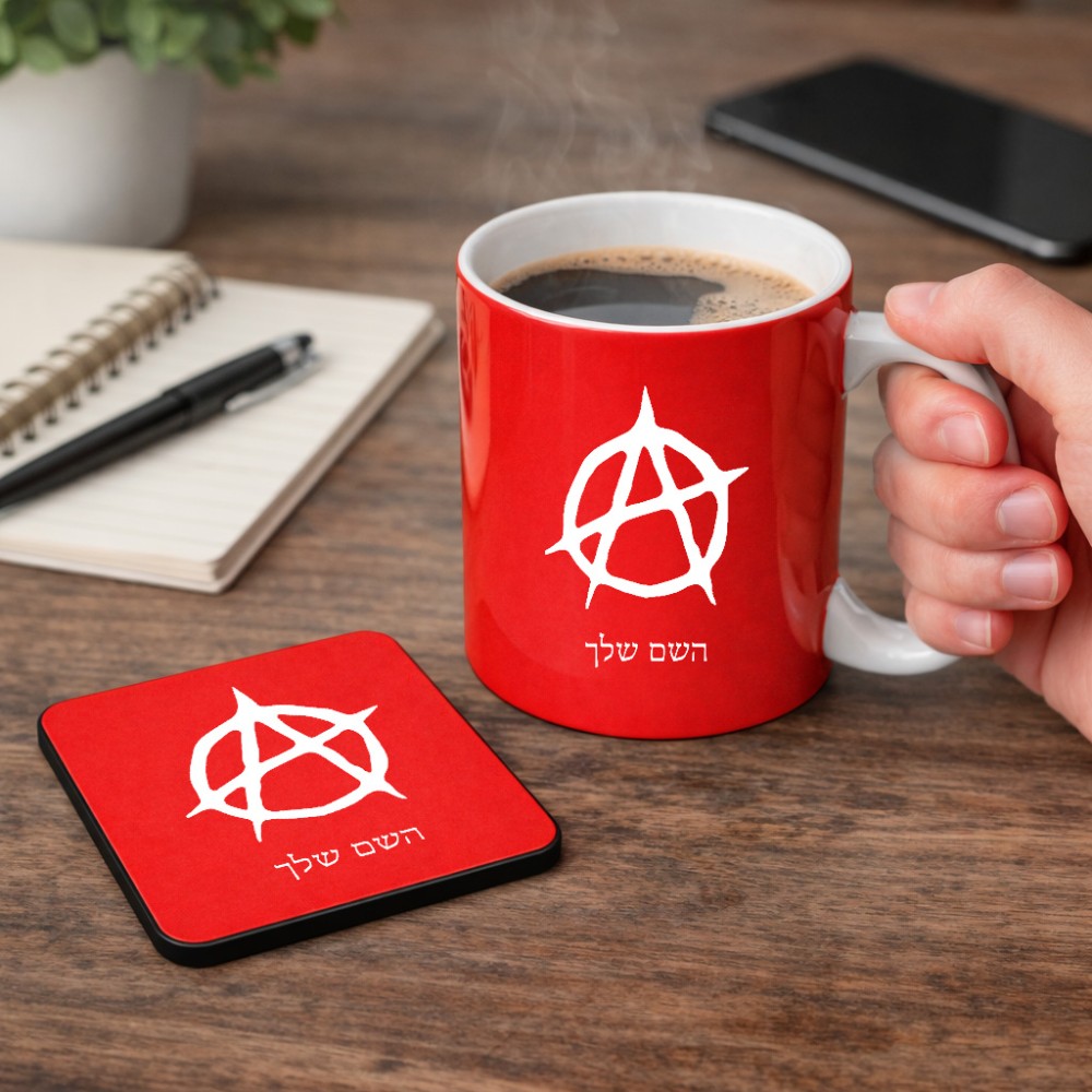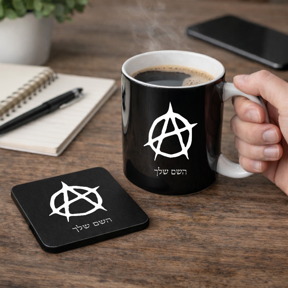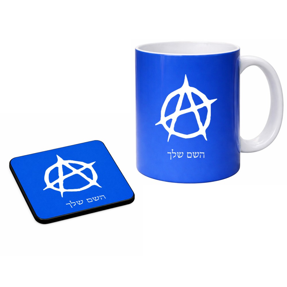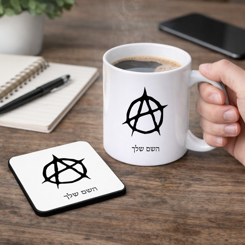 ספל תה \ קפה + תחתית מרובעת בעיצוב אישי עם השם שלך בעיצוב אנרכיה גודל הספל 325 מ"ל גודל התחתית 9 × 9 ס"מ