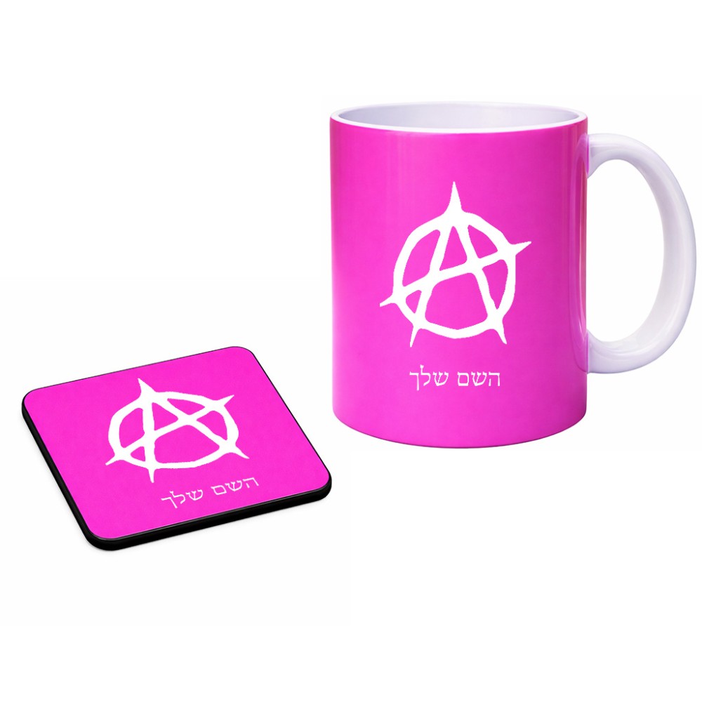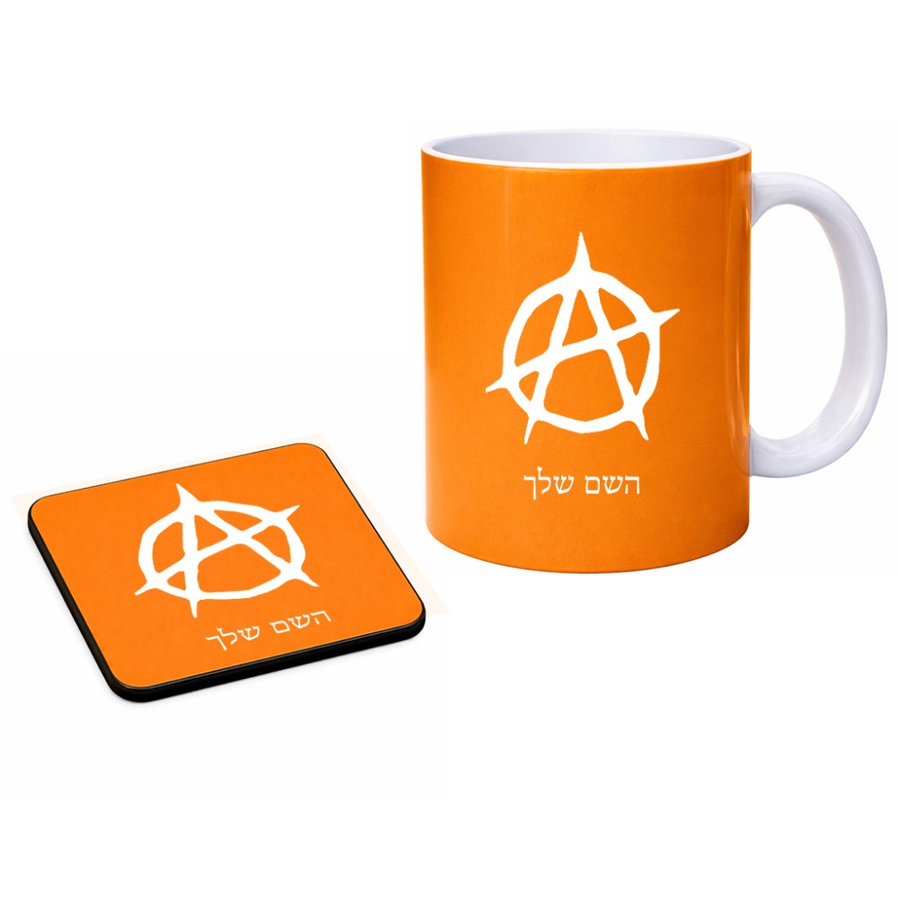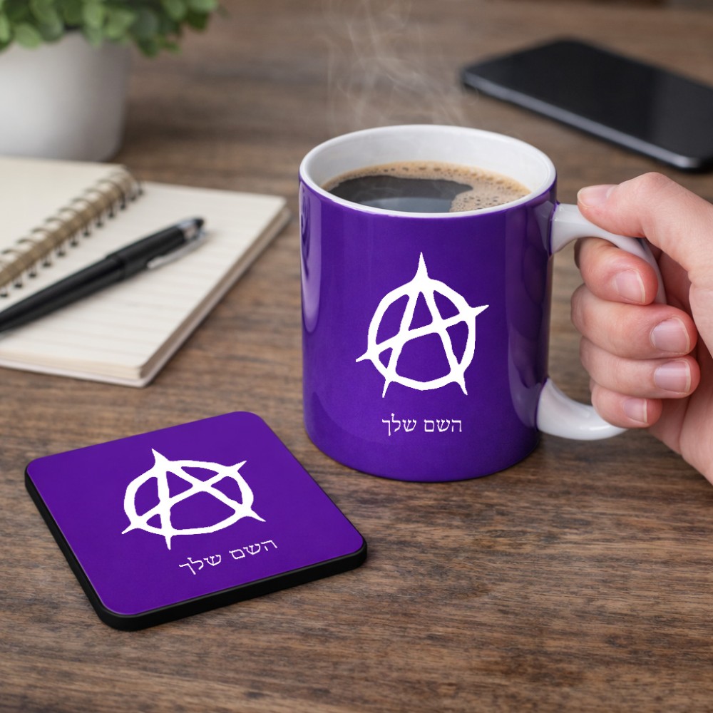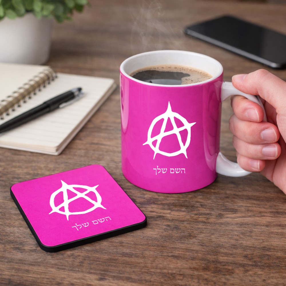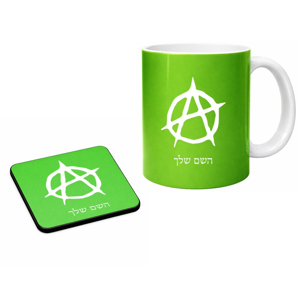 ספל תה \ קפה + תחתית מרובעת בעיצוב אישי עם השם שלך בעיצוב אנרכיה גודל הספל 325 מ"ל גודל התחתית 9 × 9 ס"מ