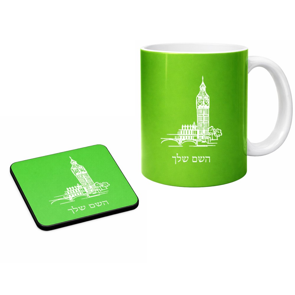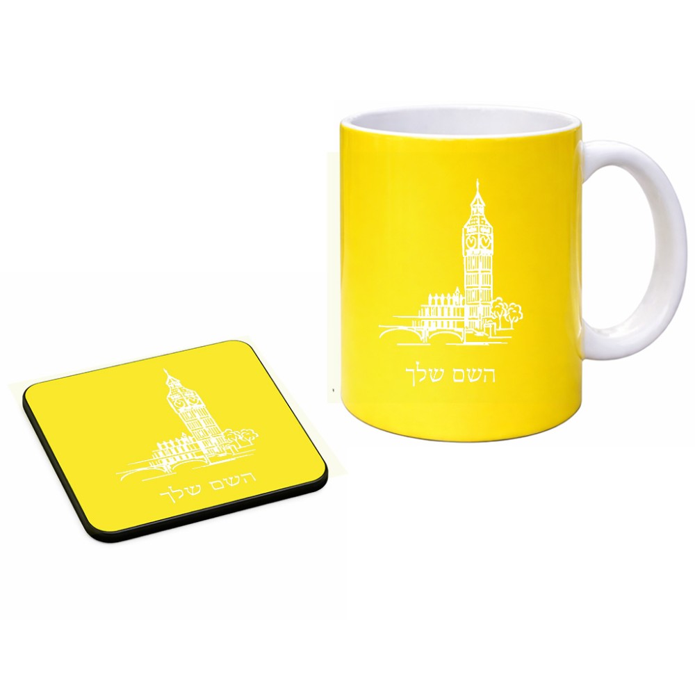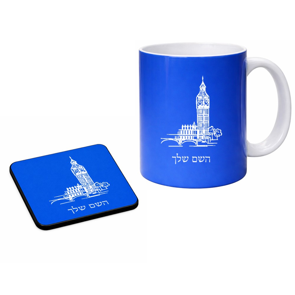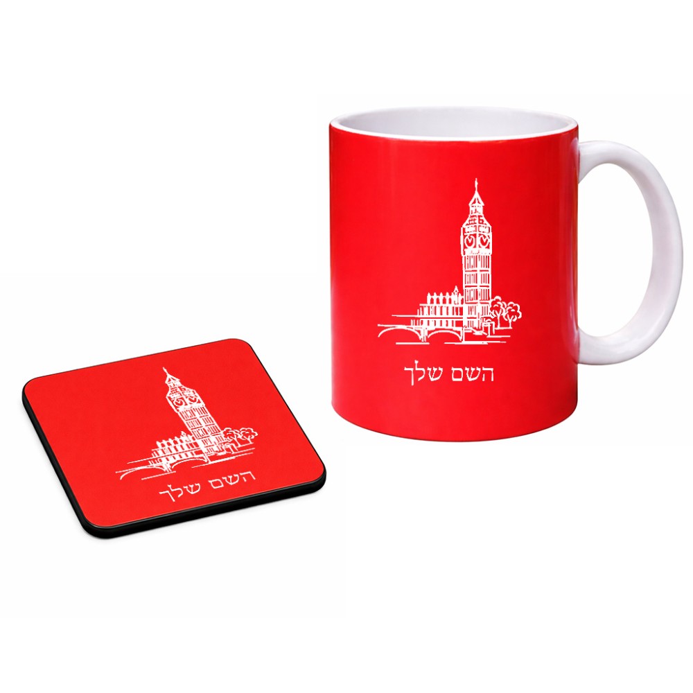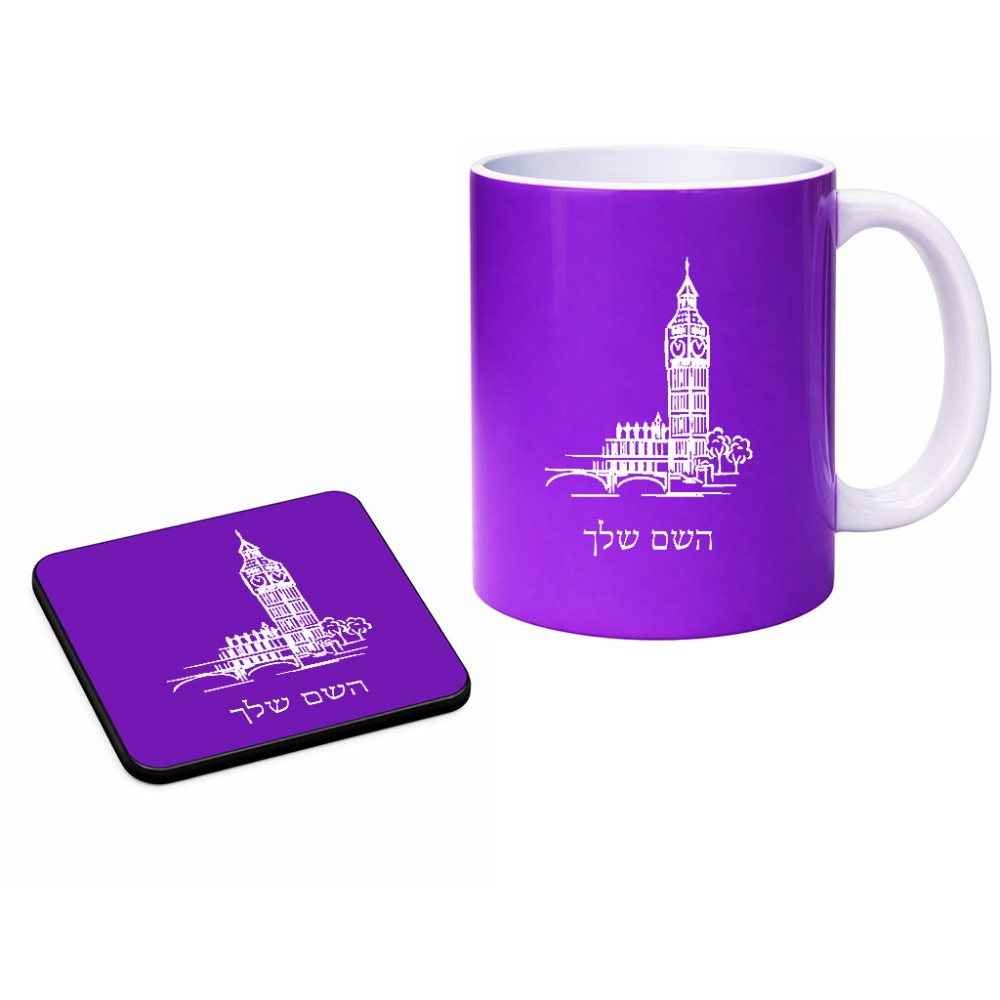 ספל תה \ קפה + תחתית מרובעת בעיצוב אישי עם השם שלך בעיצוב ביג בן גודל הספל 325 מ"ל, הספל בעלת ידית לאחיזה יציבה, תחתית מעוצבת בגודל 9 × 9 ס"מ. את השם המבוקש ניתן לציין בהזמנה, אם לא צויין אנחנו ניצור קשר לבירור.
