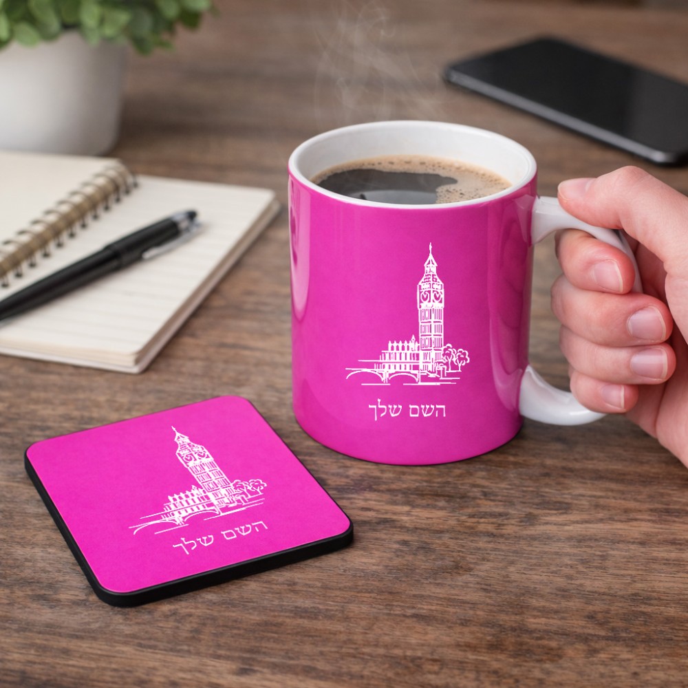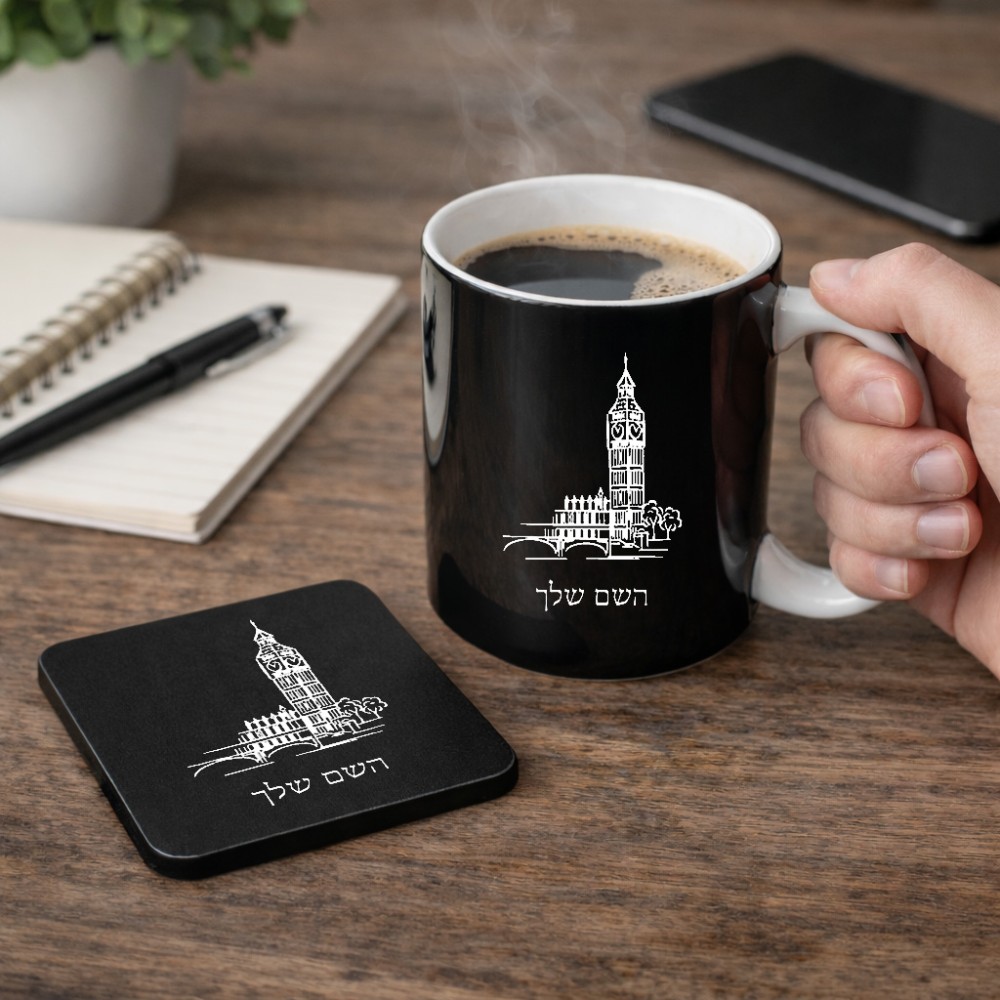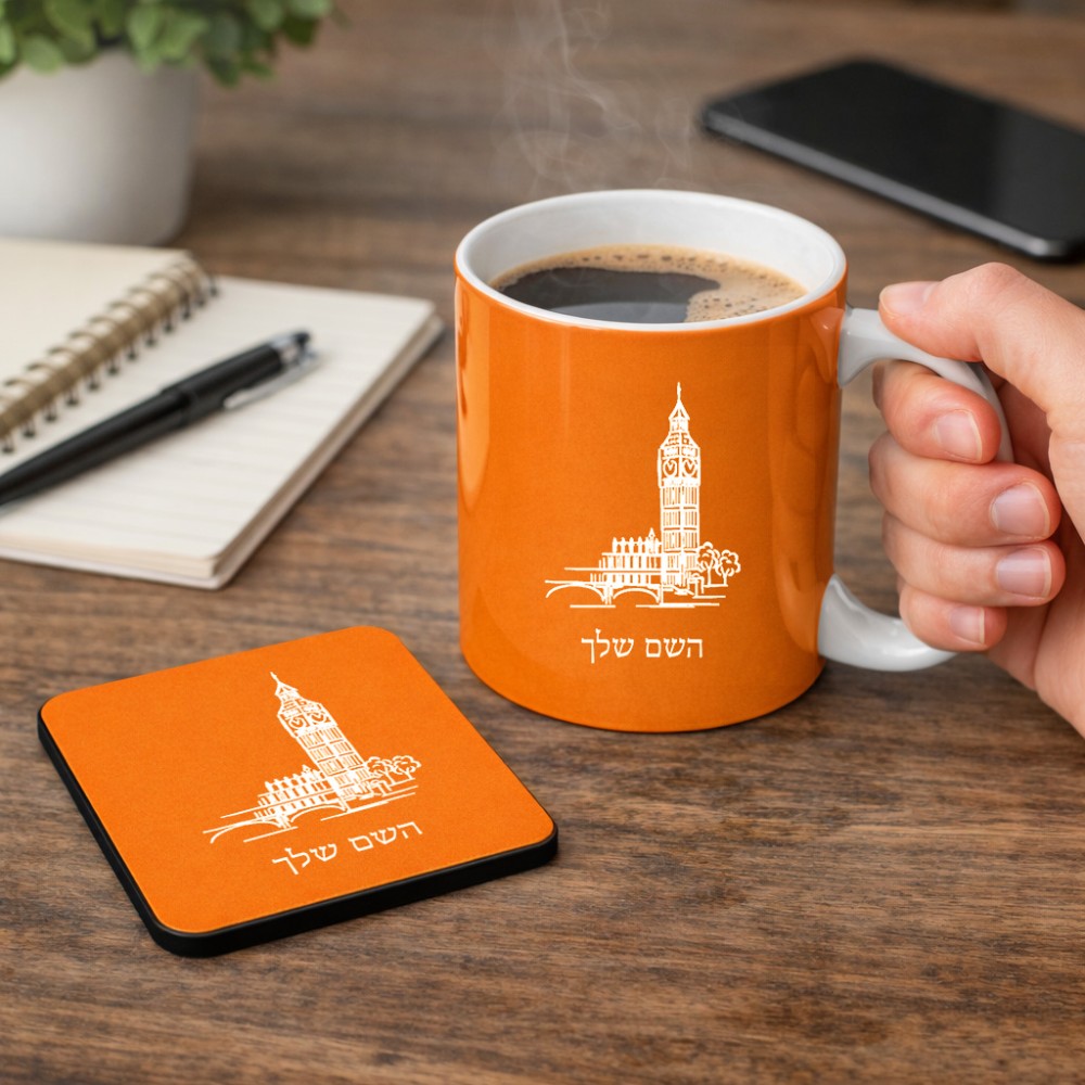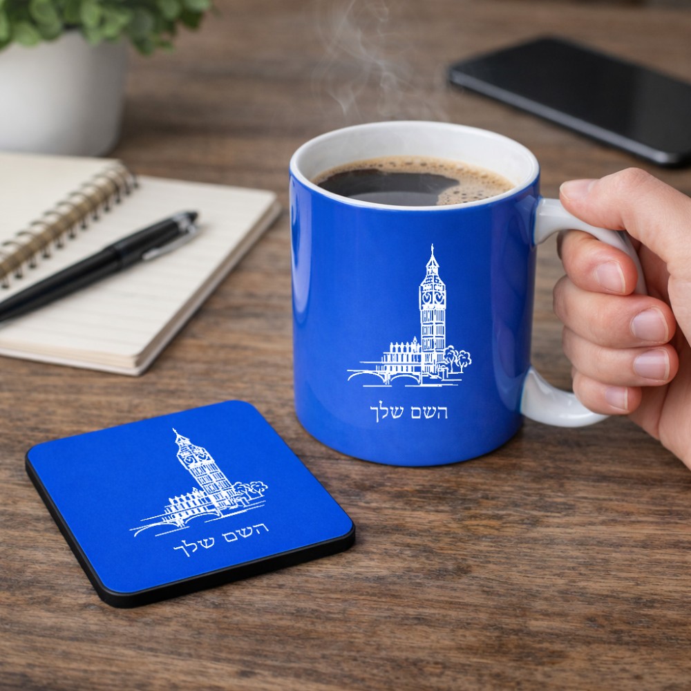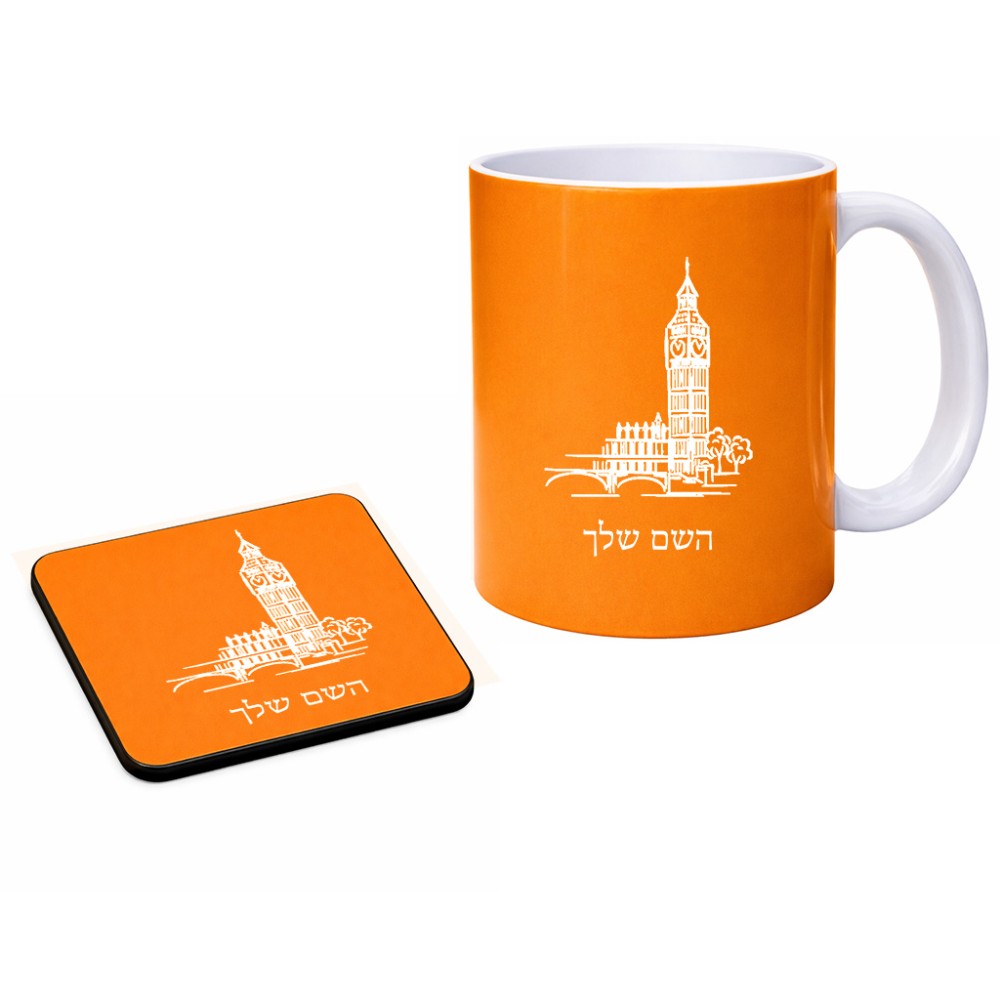 ספל תה \ קפה + תחתית מרובעת בעיצוב אישי עם השם שלך בעיצוב ביג בן גודל הספל 325 מ"ל, הספל בעלת ידית לאחיזה יציבה, תחתית מעוצבת בגודל 9 × 9 ס"מ. את השם המבוקש ניתן לציין בהזמנה, אם לא צויין אנחנו ניצור קשר לבירור.