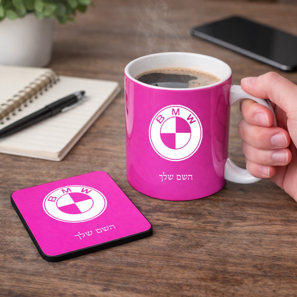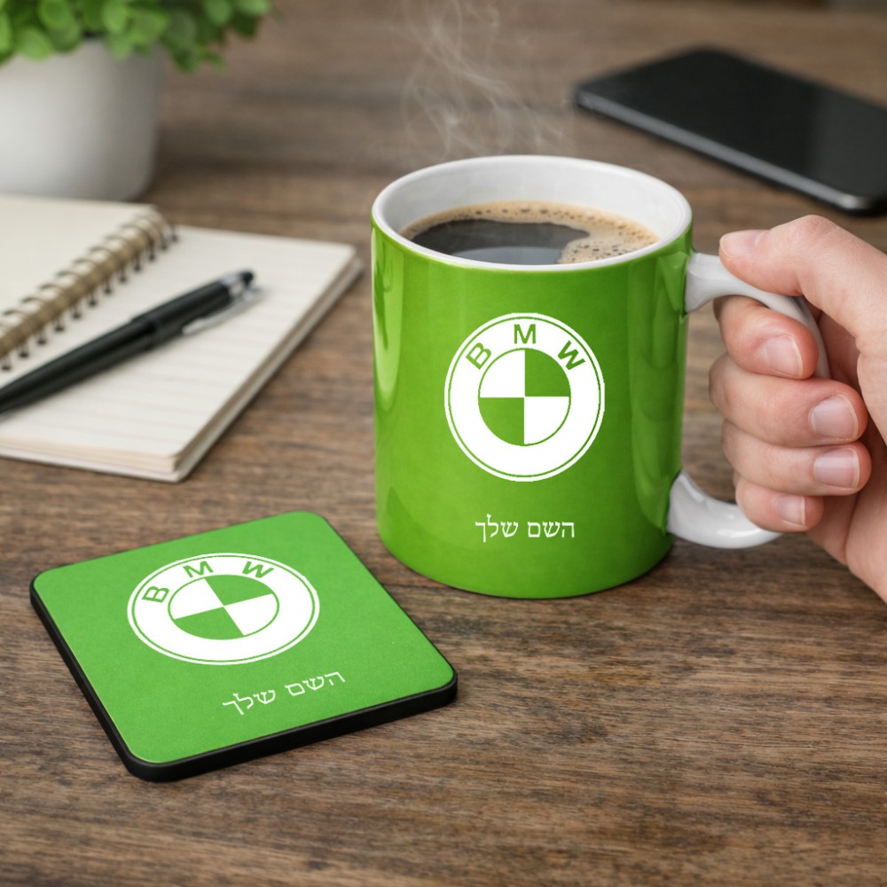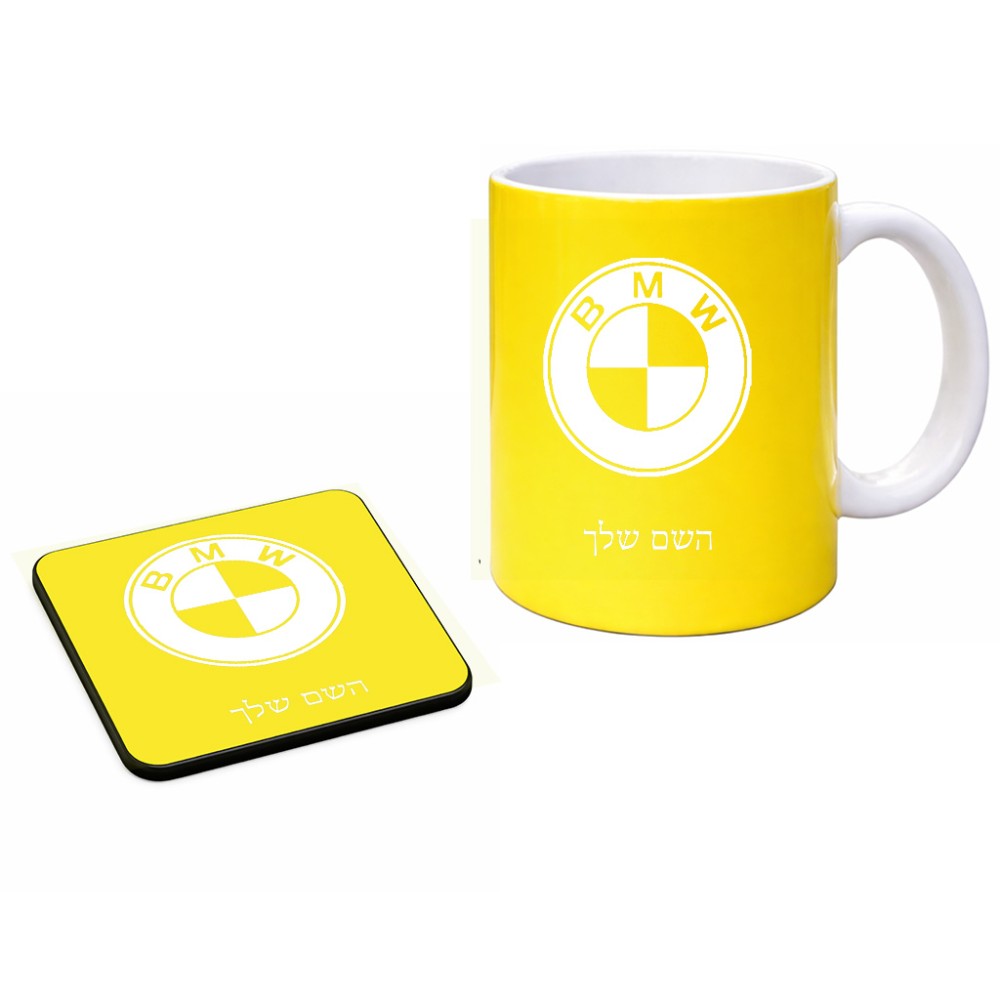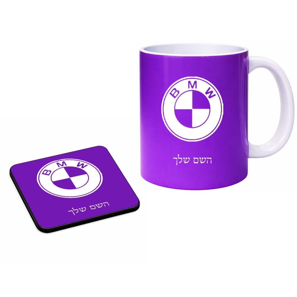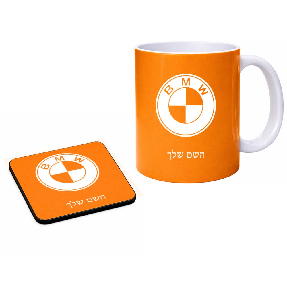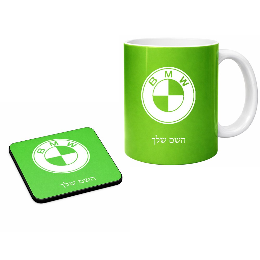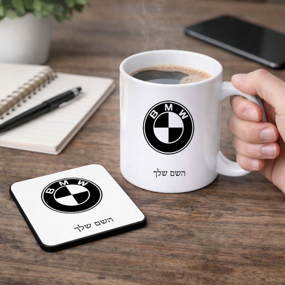 ספל תה \ קפה + תחתית מרובעת בעיצוב אישי עם השם שלך בעיצוב ב.מ.וו גודל הספל 325 מ"ל, הספל בעלת ידית לאחיזה יציבה, תחתית מעוצבת בגודל 9 × 9 ס"מ. את השם המבוקש ניתן לציין בהזמנה, אם לא צויין אנחנו ניצור קשר לבירור.