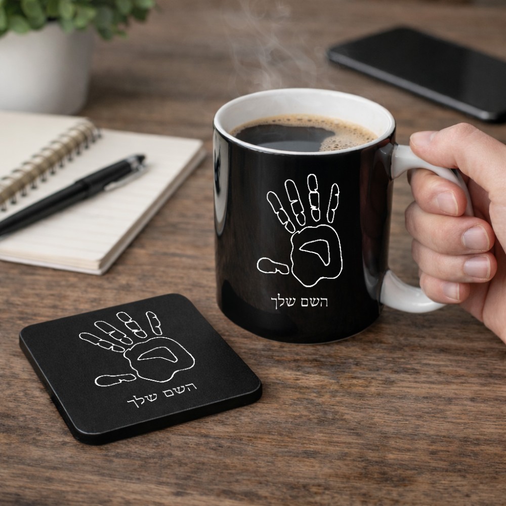 ספל תה \ קפה + תחתית מרובעת בעיצוב אישי עם השם שלך בעיצוב יד גודל הספל 325 מ"ל, הספל בעלת ידית לאחיזה יציבה, תחתית מעוצבת בגודל 9 × 9 ס"מ. את השם המבוקש ניתן לציין בהזמנה, אם לא צויין אנחנו ניצור קשר לבירור.