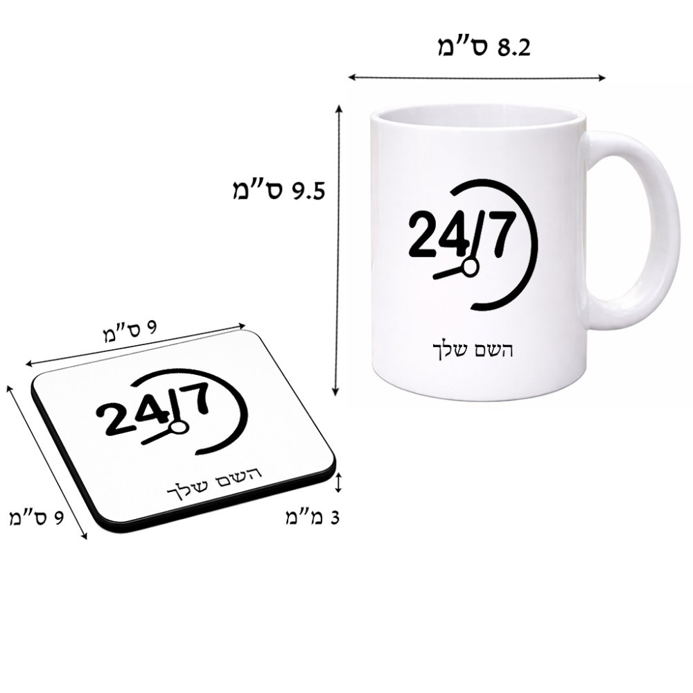 ספל תה \ קפה + תחתית מרובעת בעיצוב אישי עם השם שלך בעיצוב 24 ביולי גודל הספל 325 מ"ל, הספל בעלת ידית לאחיזה יציבה, תחתית מעוצבת בגודל 9 × 9 ס"מ. את השם המבוקש ניתן לציין בהזמנה, אם לא צויין אנחנו ניצור קשר לבירור.