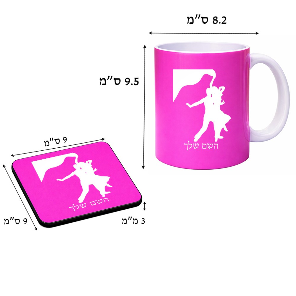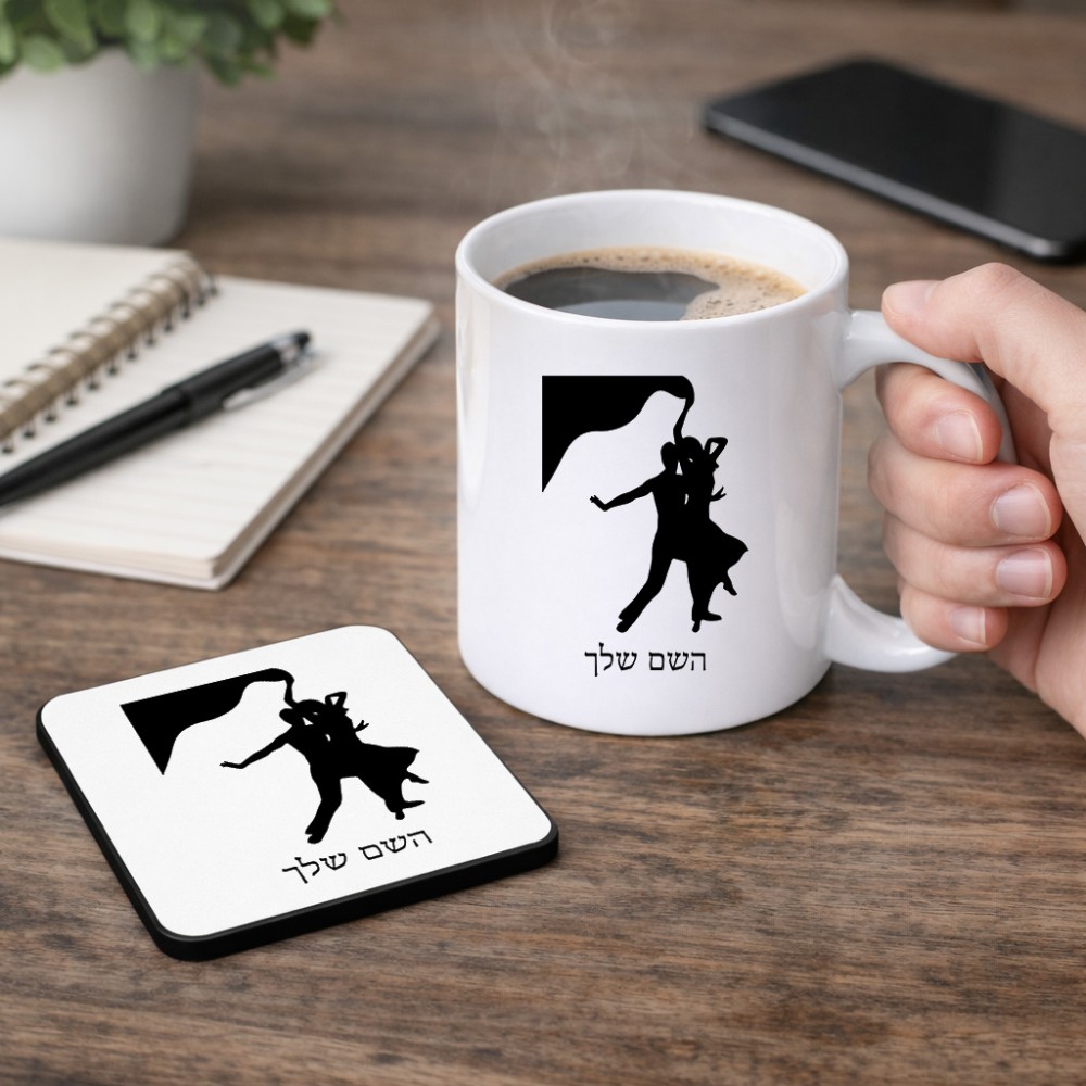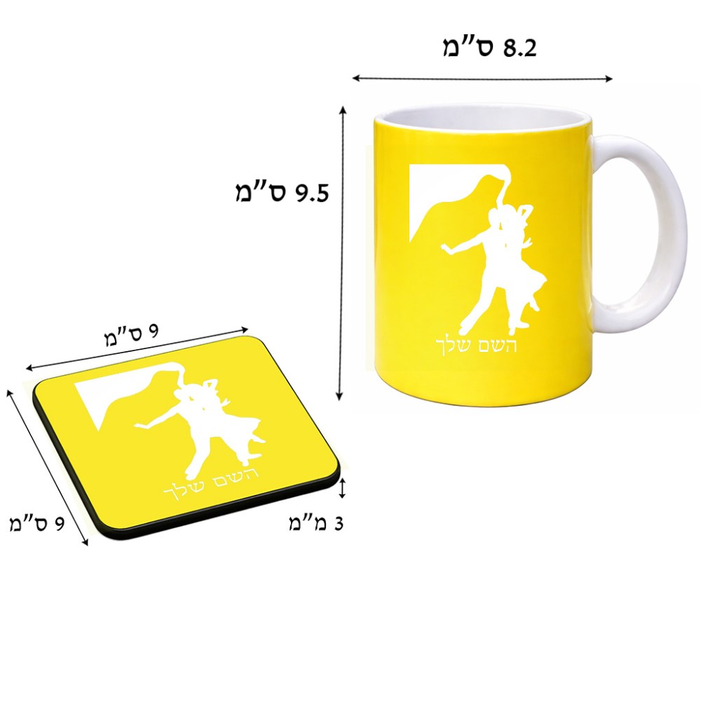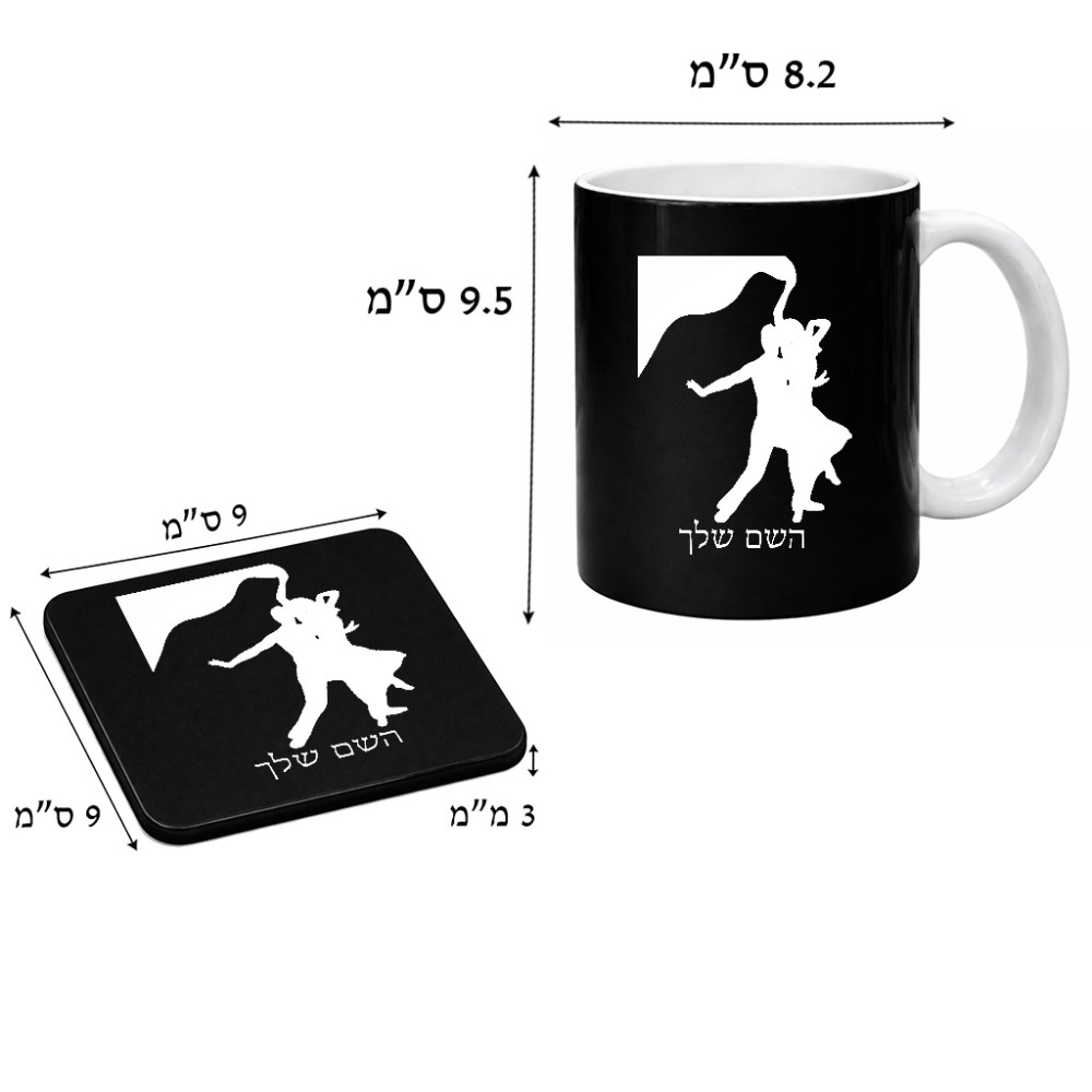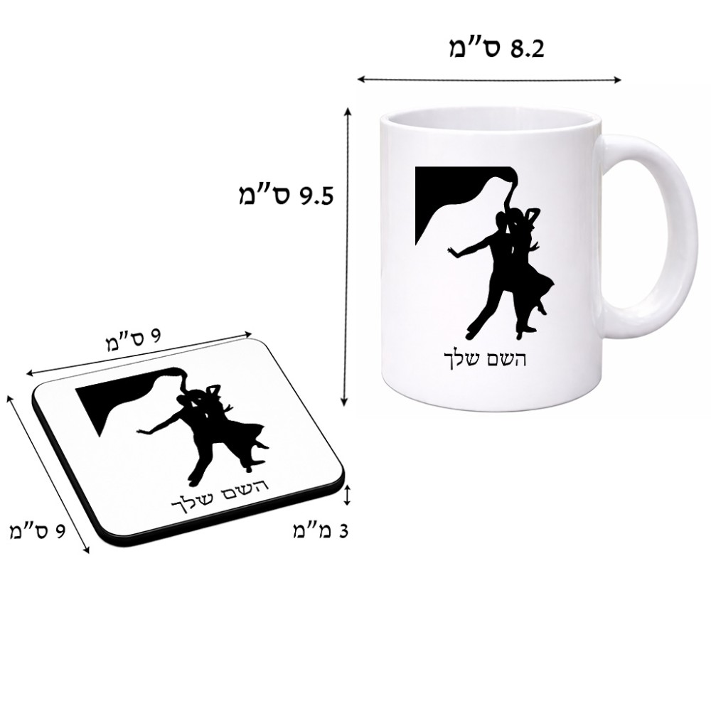ספל תה \ קפה + תחתית מרובעת בעיצוב אישי עם השם שלך בעיצוב אישה רוקדת עם גבר גודל הספל 325 מ"ל, הספל בעלת ידית לאחיזה יציבה, תחתית מעוצבת בגודל 9 × 9 ס"מ. את השם המבוקש ניתן לציין בהזמנה, אם לא צויין אנחנו ניצור קשר לבירור.