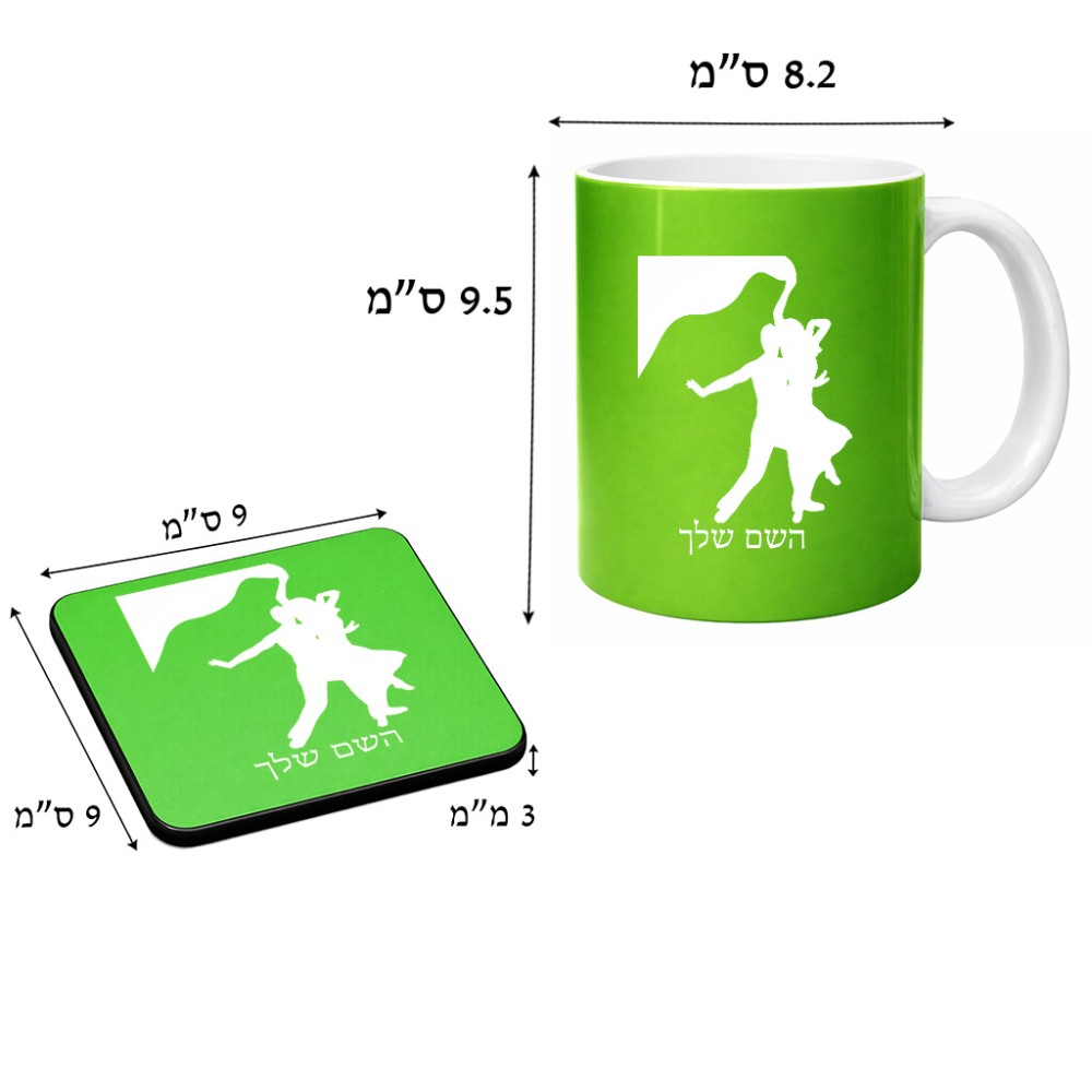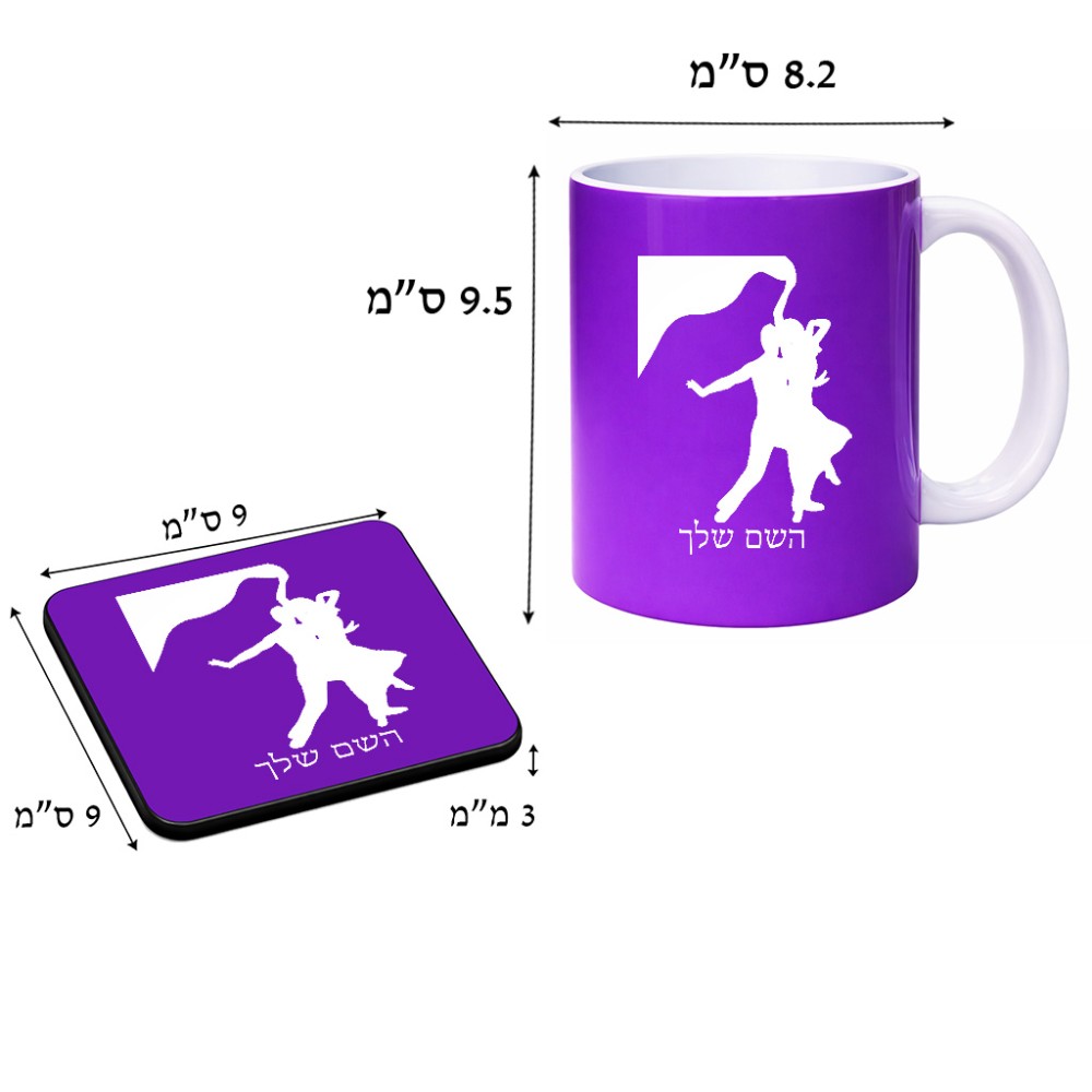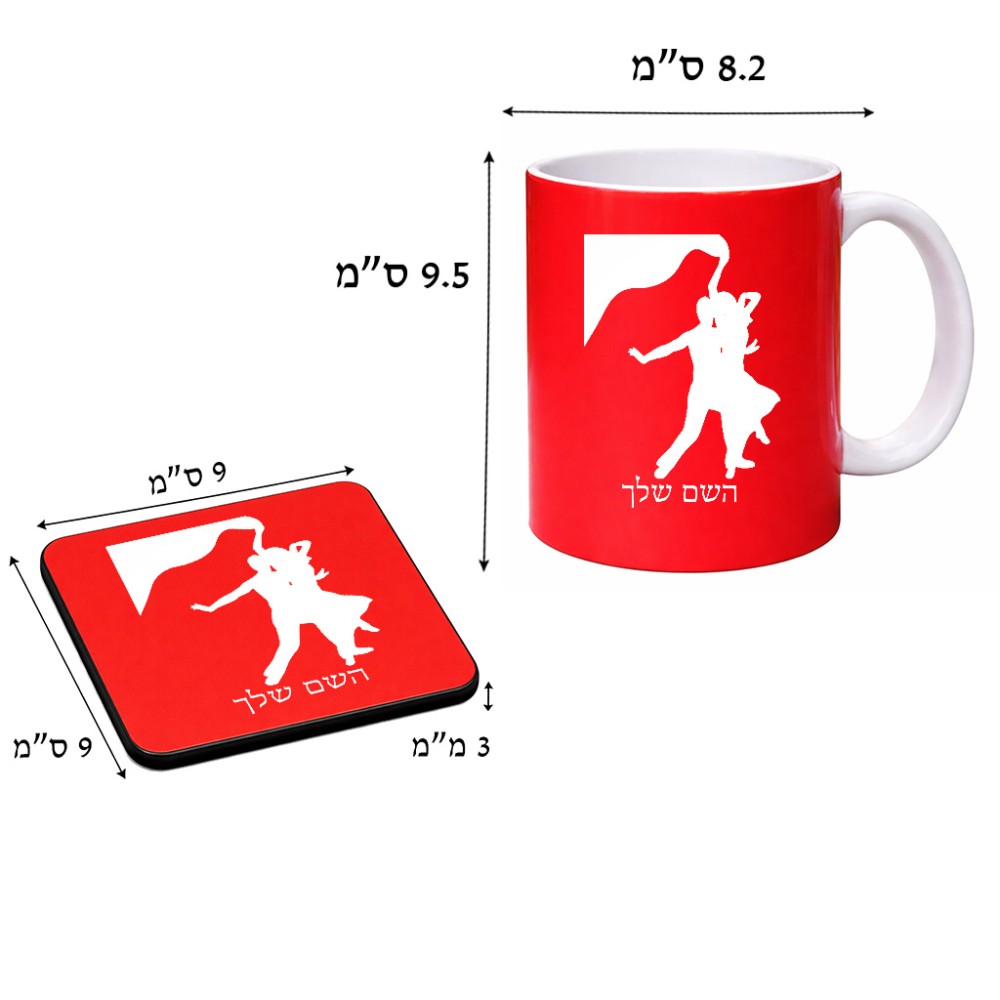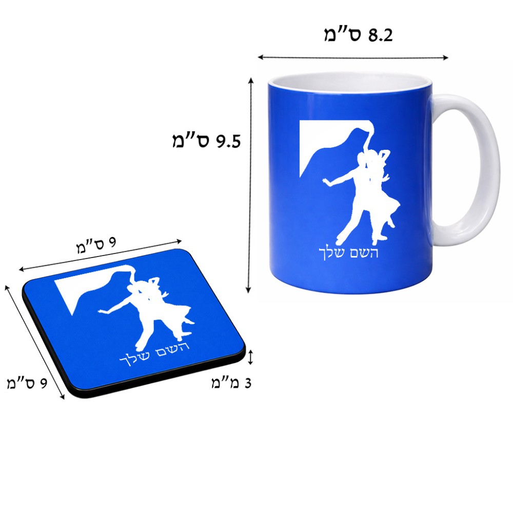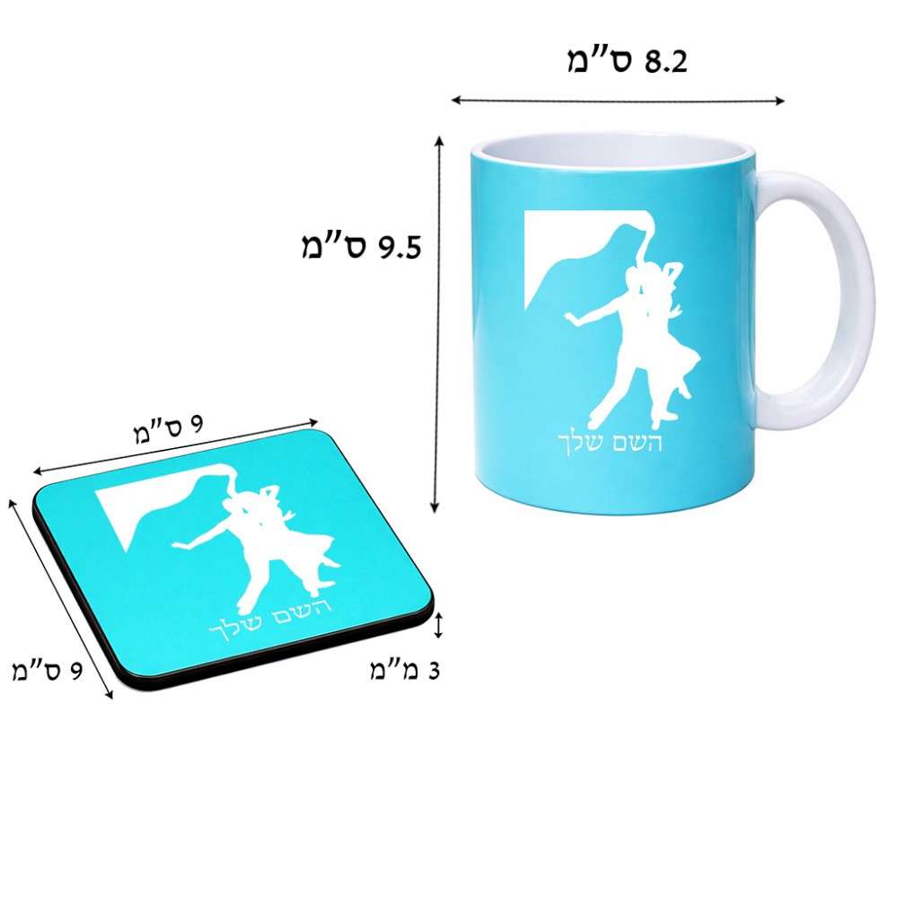 ספל תה \ קפה + תחתית מרובעת בעיצוב אישי עם השם שלך בעיצוב אישה רוקדת עם גבר גודל הספל 325 מ"ל, הספל בעלת ידית לאחיזה יציבה, תחתית מעוצבת בגודל 9 × 9 ס"מ. את השם המבוקש ניתן לציין בהזמנה, אם לא צויין אנחנו ניצור קשר לבירור.