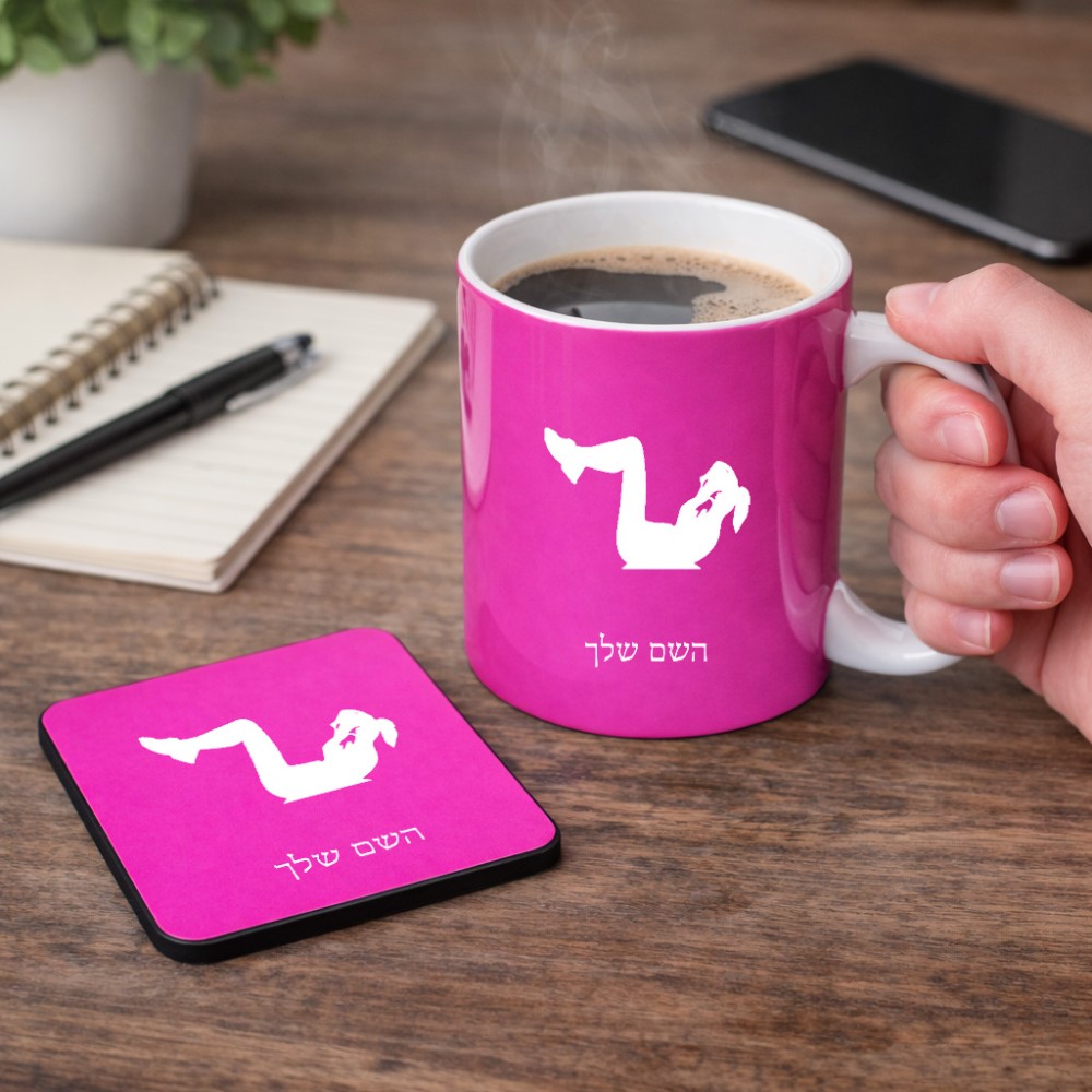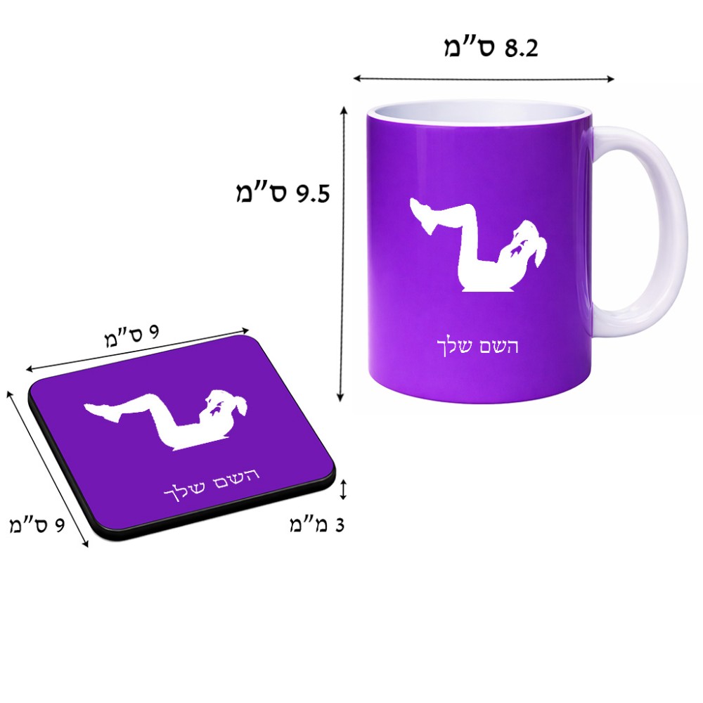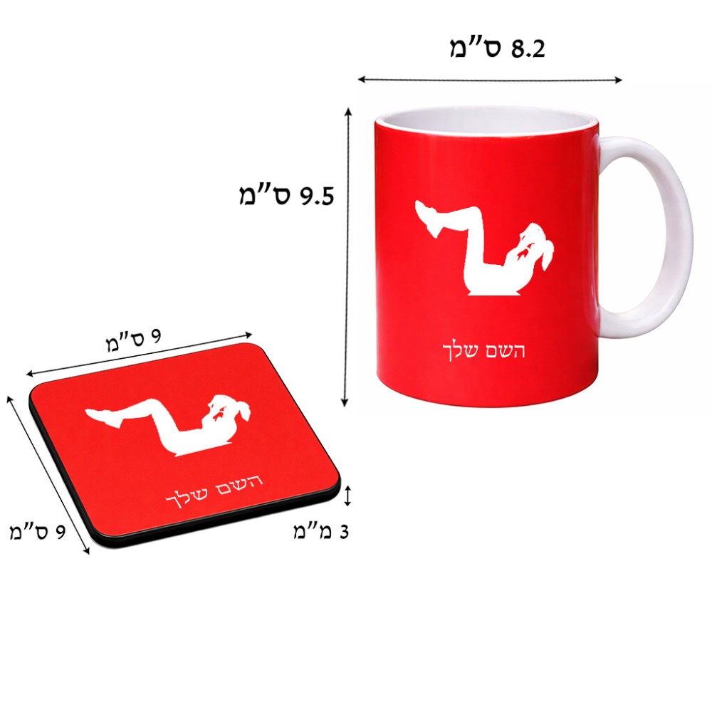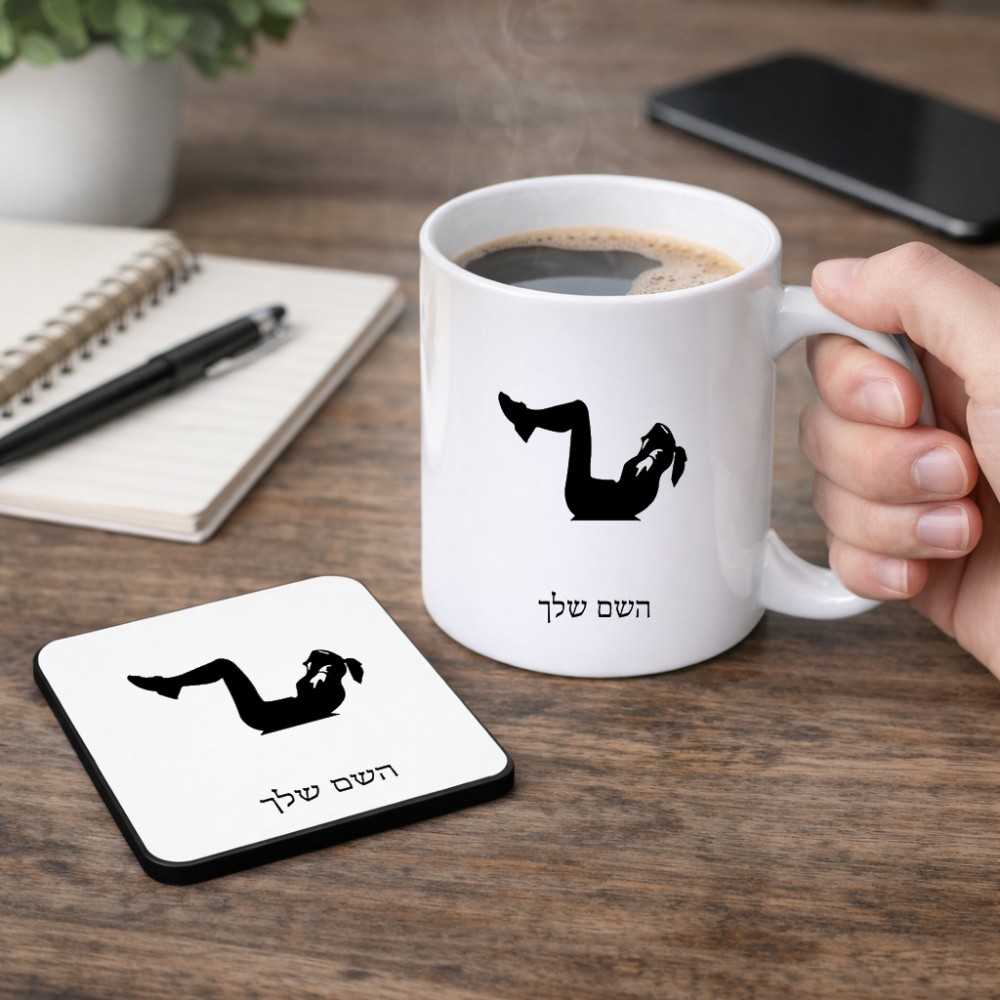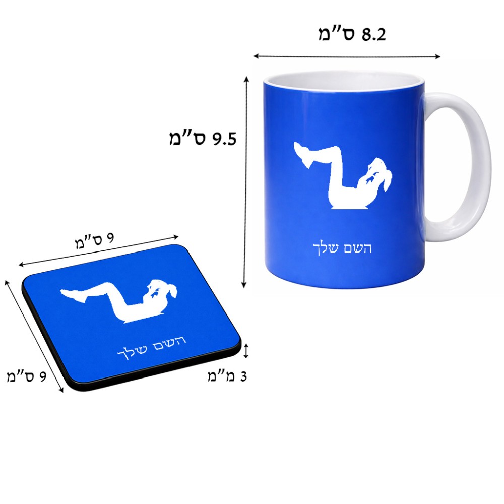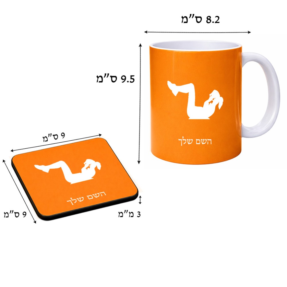 ספל תה \ קפה + תחתית מרובעת בעיצוב אישי עם השם שלך בעיצוב אישה מתאמנת גודל הספל 325 מ"ל, הספל בעלת ידית לאחיזה יציבה, תחתית מעוצבת בגודל 9 × 9 ס"מ. את השם המבוקש ניתן לציין בהזמנה, אם לא צויין אנחנו ניצור קשר לבירור.