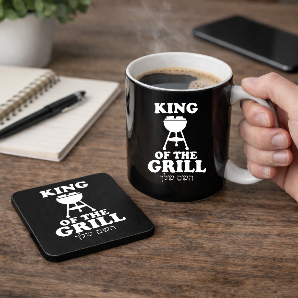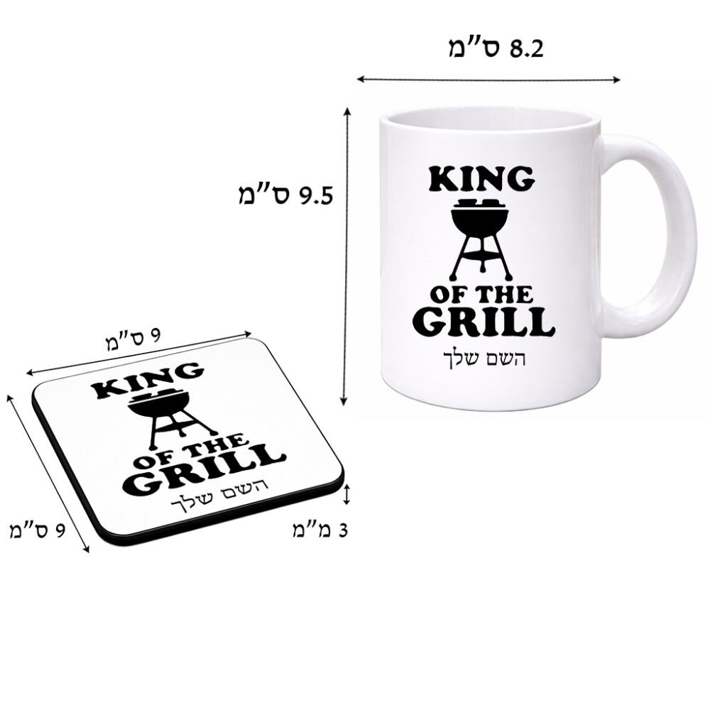ספל תה \ קפה + תחתית מרובעת בעיצוב אישי עם השם שלך בעיצוב מלך הגריל גודל הספל 325 מ"ל, הספל בעלת ידית לאחיזה יציבה, תחתית מעוצבת בגודל 9 × 9 ס"מ. את השם המבוקש ניתן לציין בהזמנה, אם לא צויין אנחנו ניצור קשר לבירור.